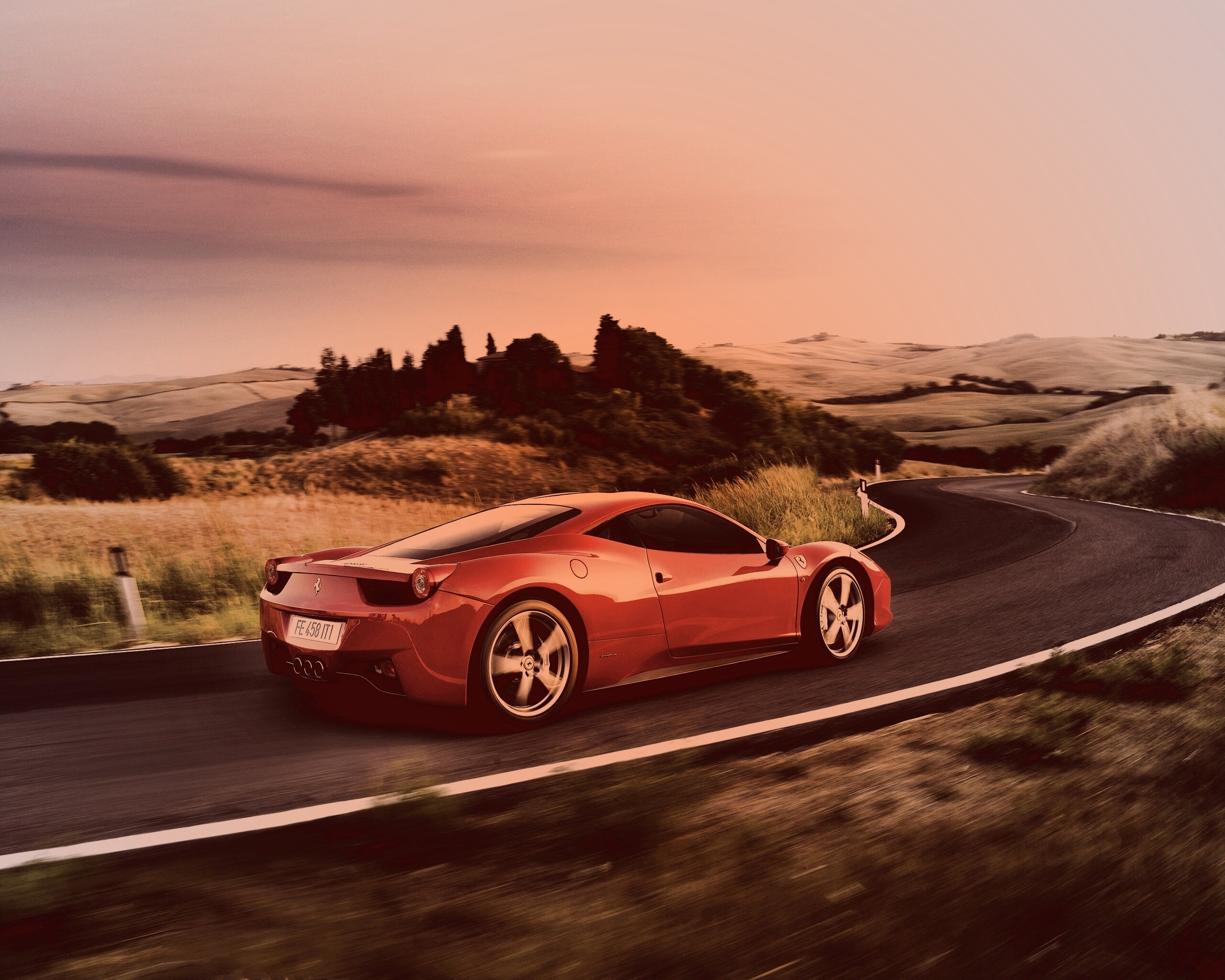 «Красная феррари на извилистой дороге»