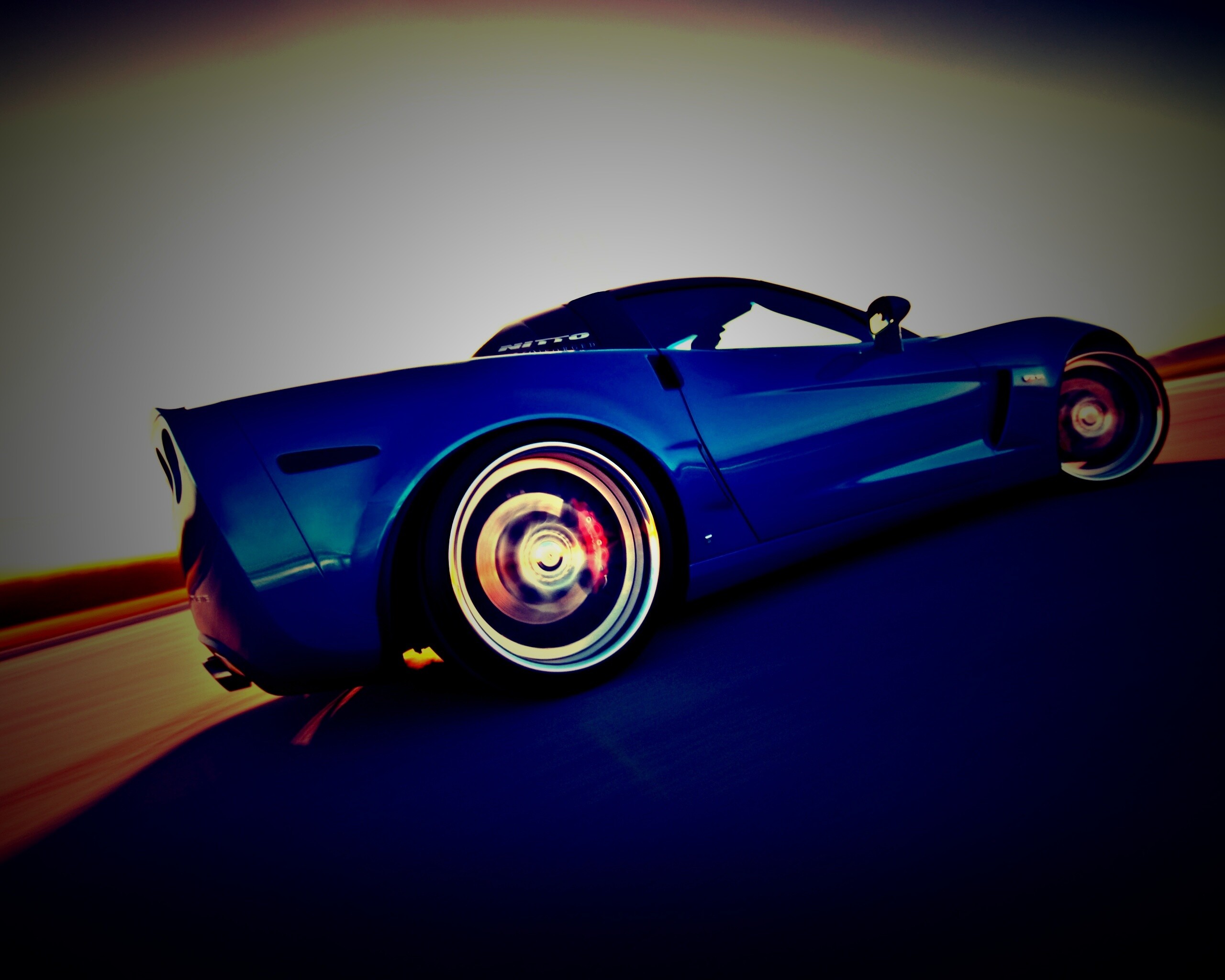Обои для рабочего стола «Гоночный спорткар синего цвета» 2560х2048 с фильтром lomo (оригинал 4240х2796)
