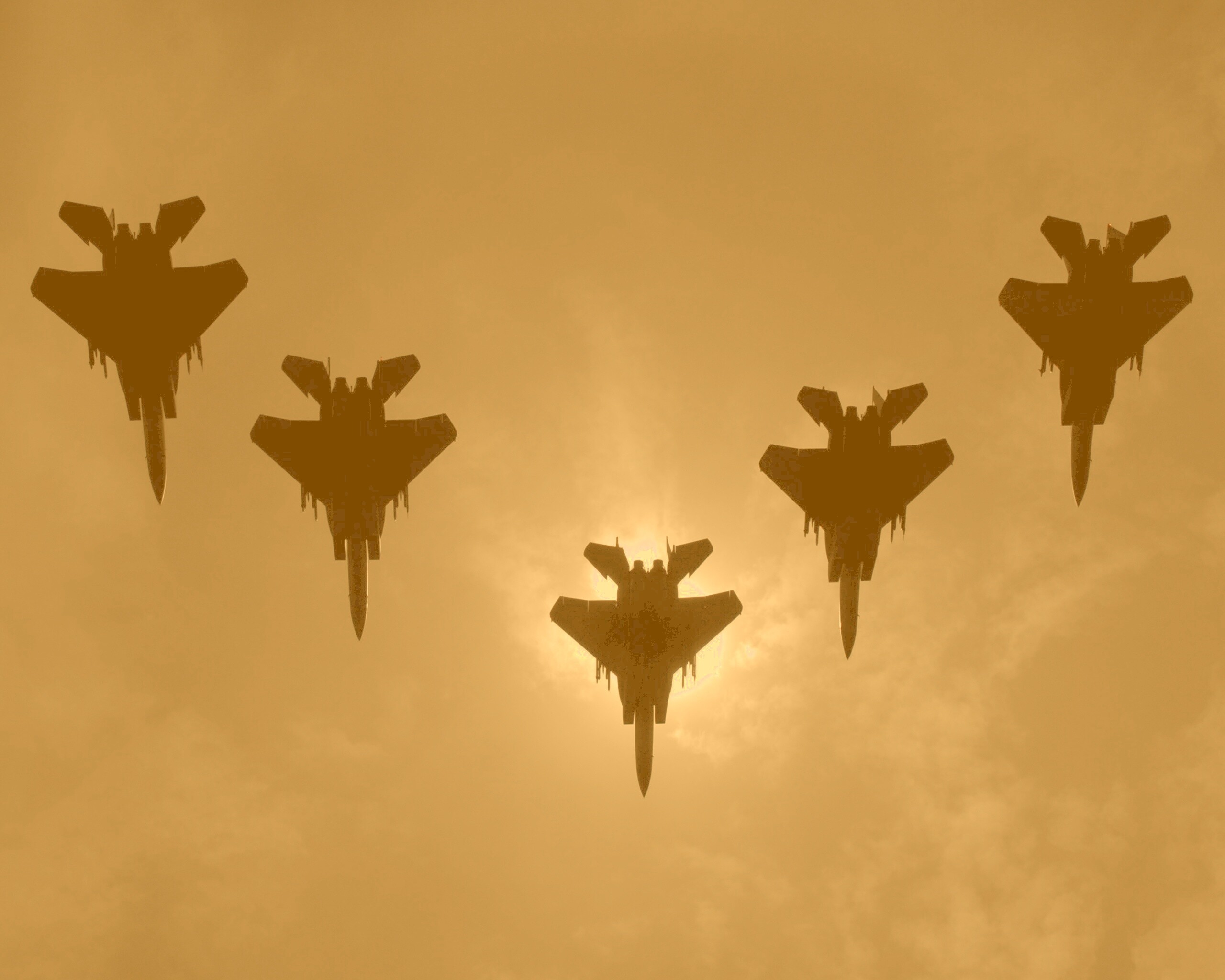«Ряд истрибителей на фоне солнца»