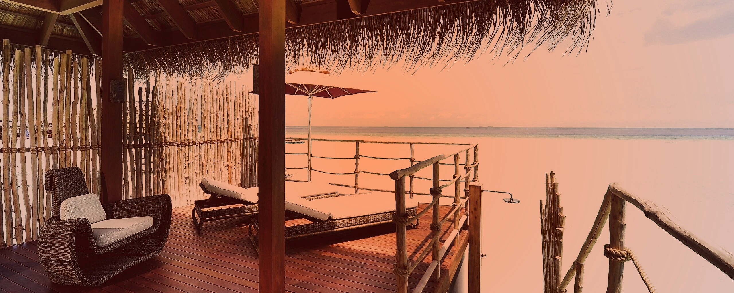 Обои для рабочего стола «Домик на пляже» 2560х1024 с фильтром toaster (оригинал 2560х1600)