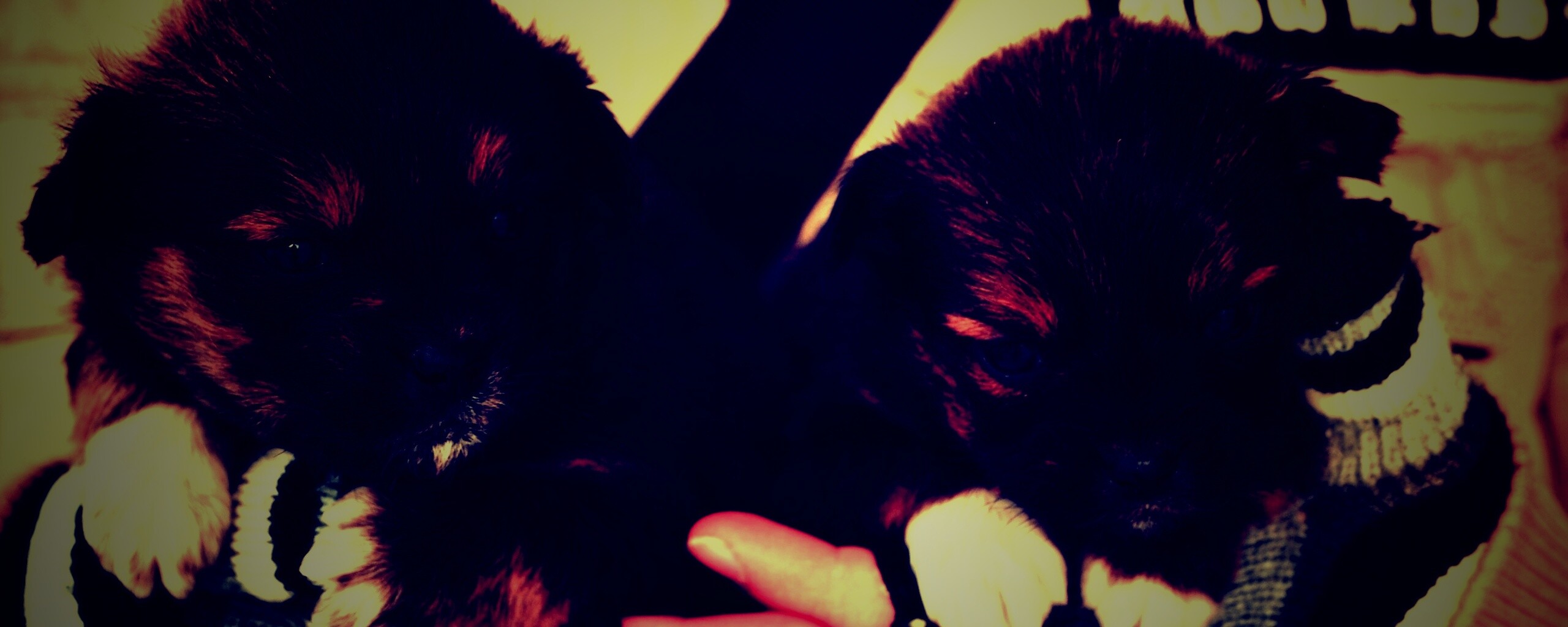 Обои для рабочего стола «Два коричневых щенка» 2560х1024 с фильтром lomo (оригинал 3872х2592)