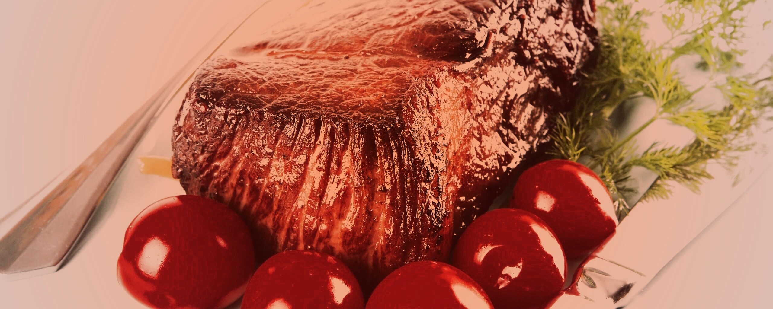 Обои для рабочего стола «Стейк с помидорами» 2560х1024 с фильтром toaster (оригинал 2560х1600)