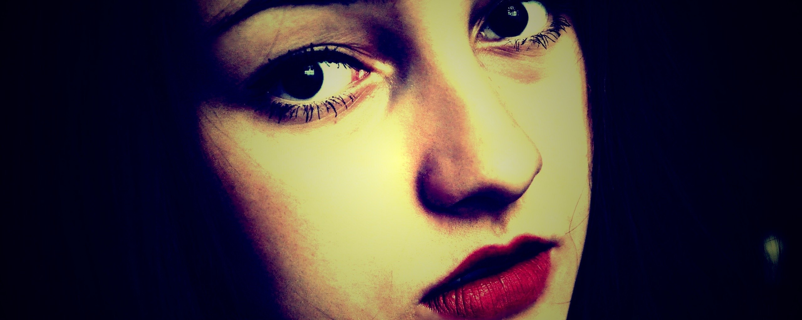 «Брюнетка с ярким макияжем и печальным лицом»