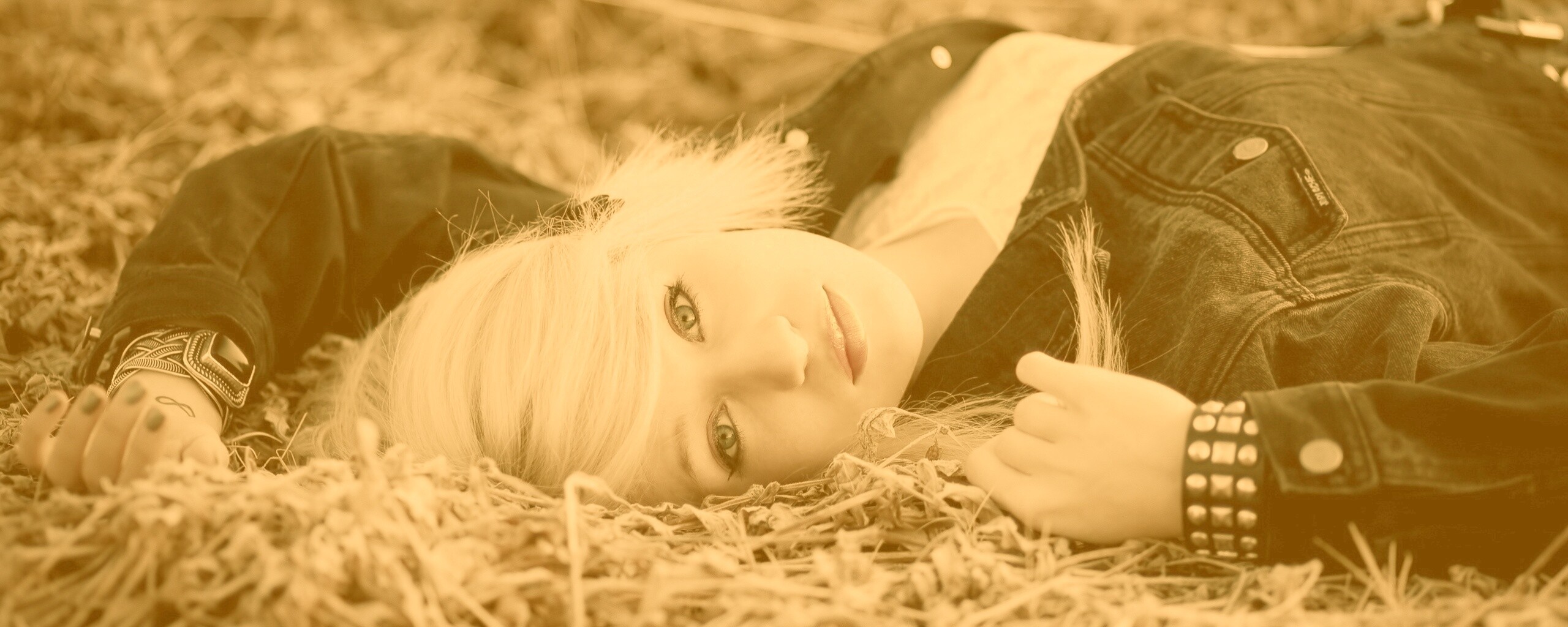 «Блондинка лежащая на траве»