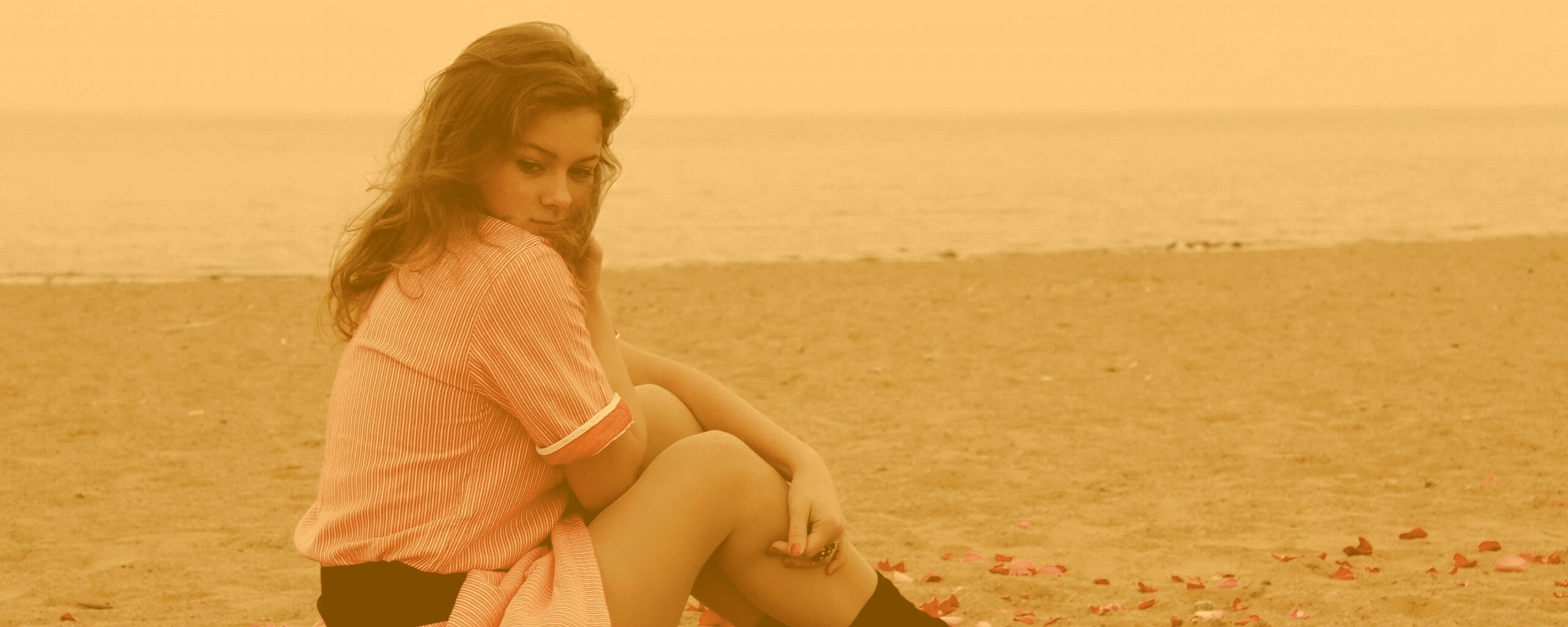 «Девушка среди лепестков на пляже»