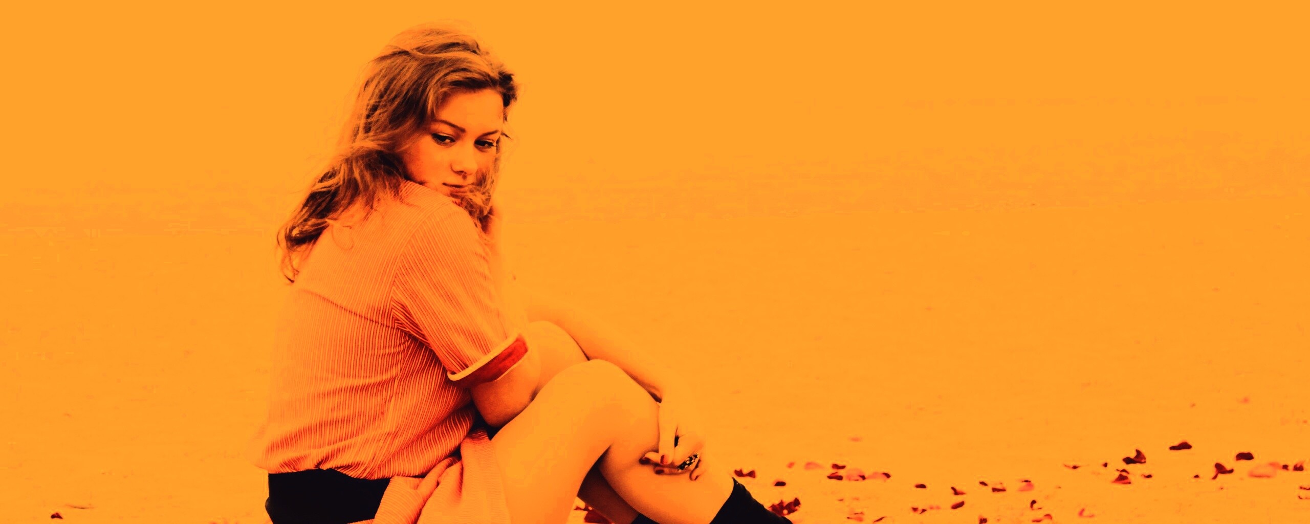 «Девушка среди лепестков на пляже»
