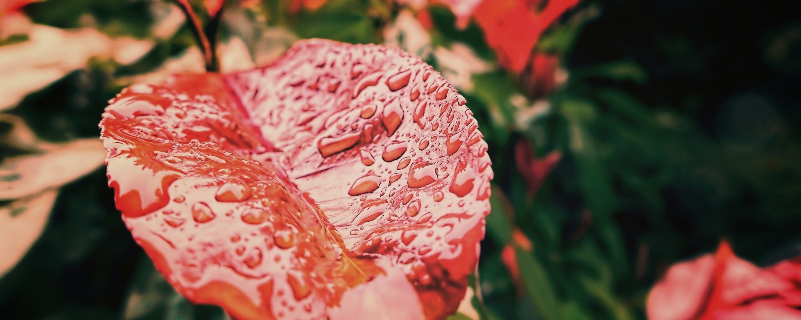 «Красный лист в каплях воды»