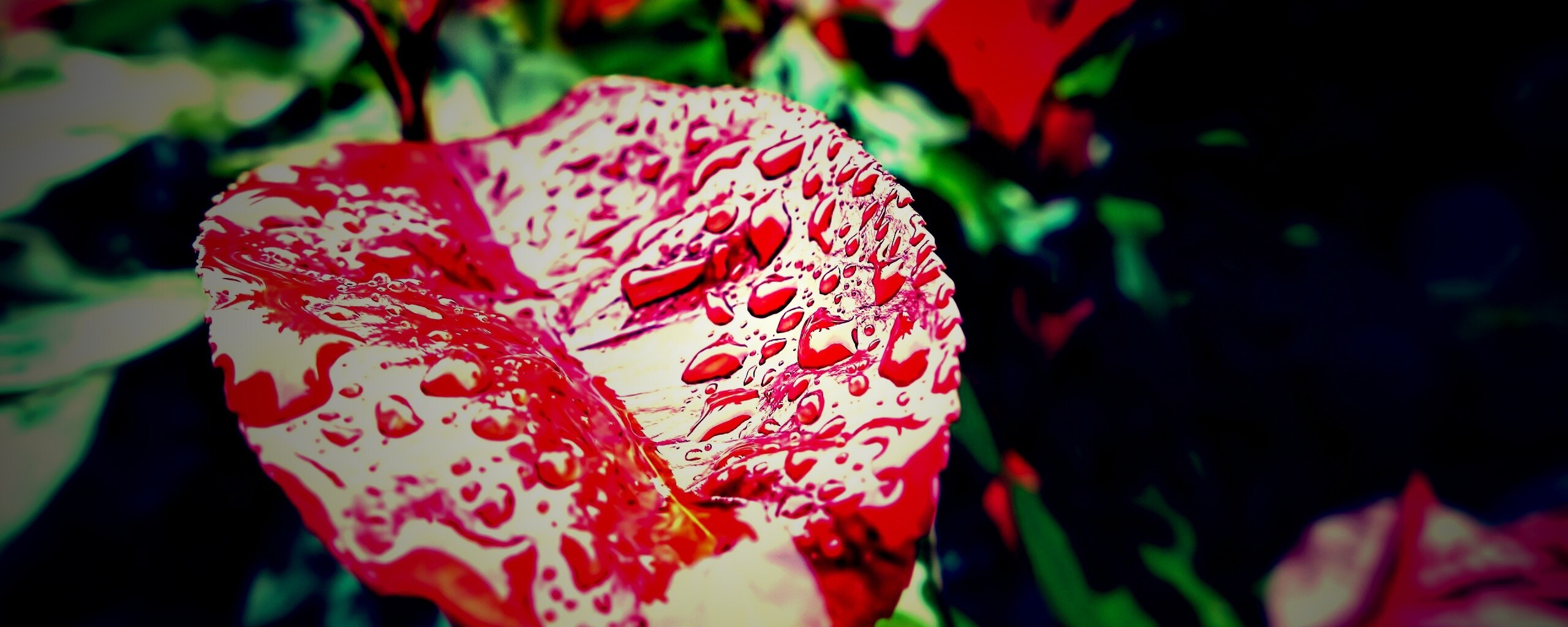 «Красный лист в каплях воды»