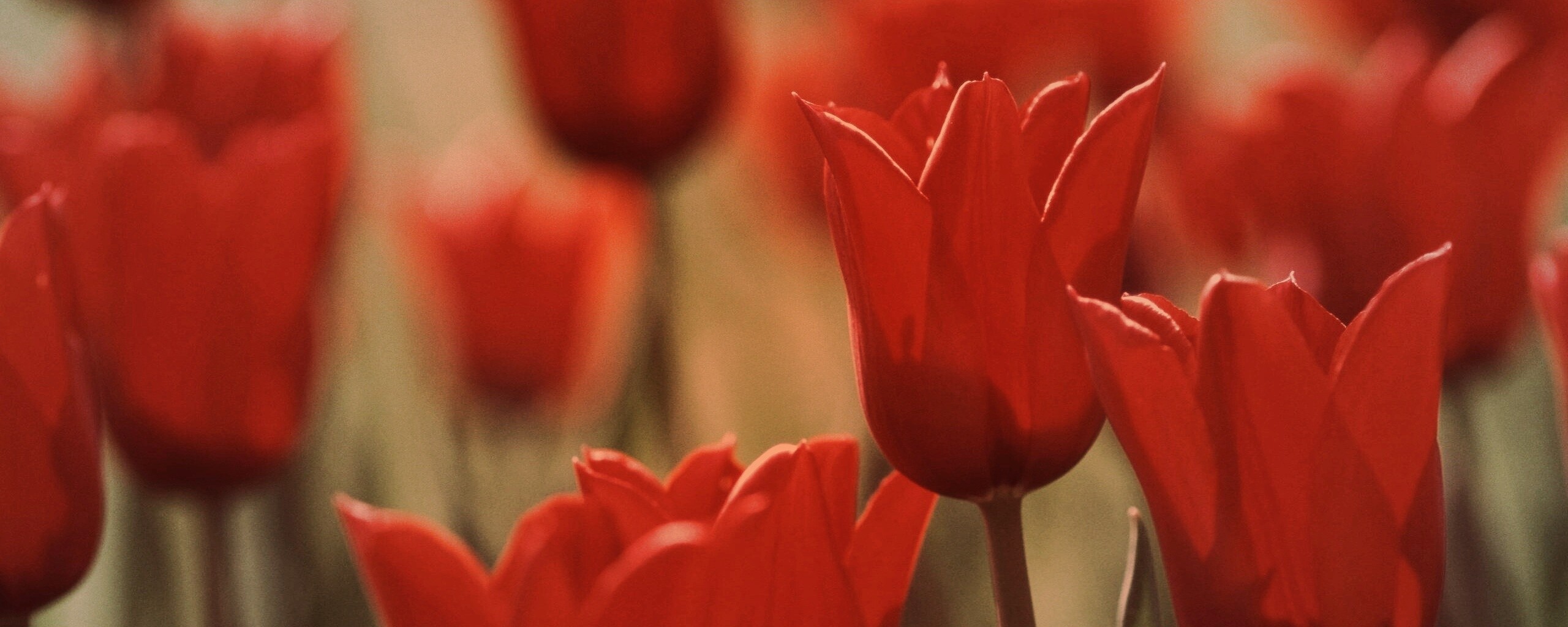 Обои для рабочего стола «Красные цветы» 2560х1024 с фильтром toaster (оригинал 2560х1600)