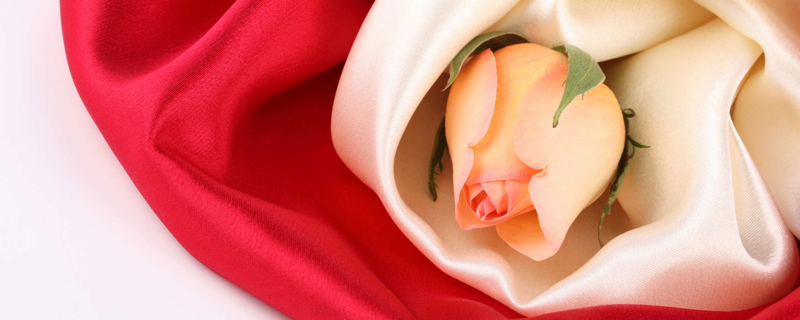 Обои для рабочего стола «Нераспустившийся цветок розы в шелке» 2560х1024 (оригинал 2560х1600)
