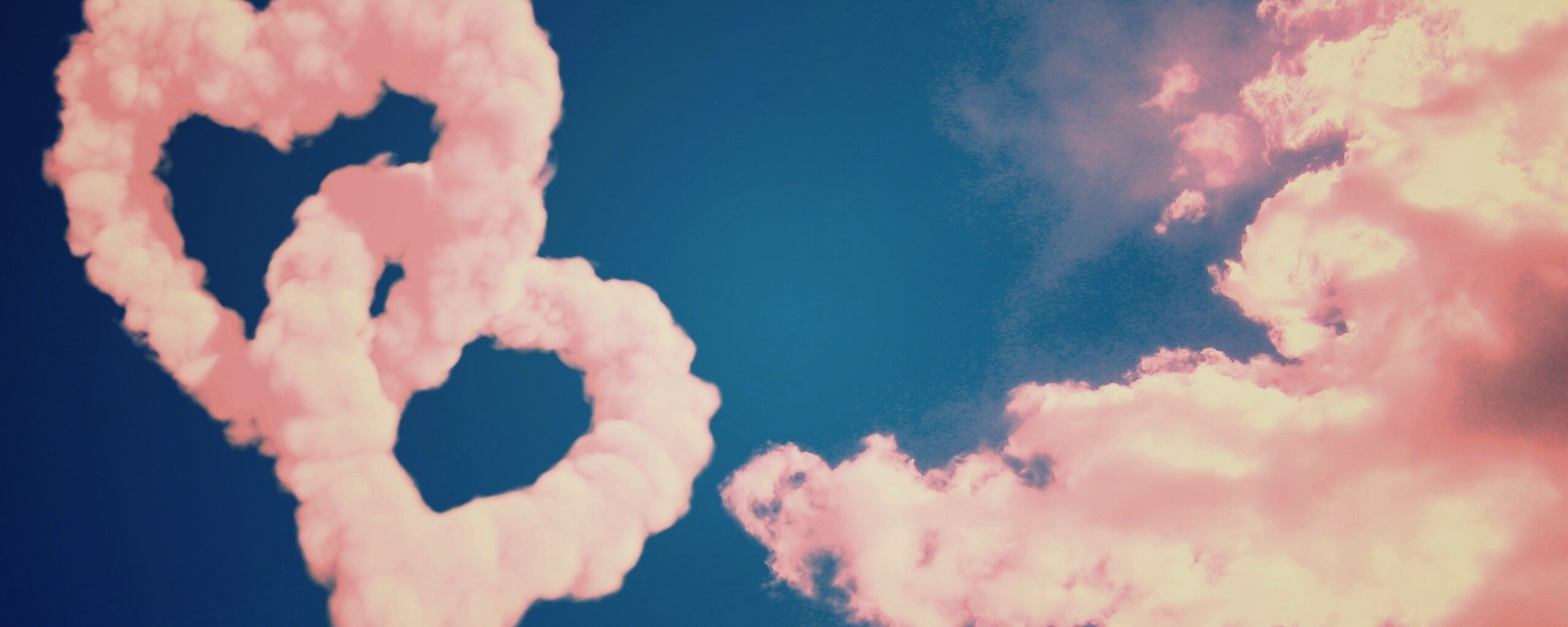 Обои для рабочего стола «Облака в виде сердца» 2560х1024 с фильтром earlybird (оригинал 2560х1600)