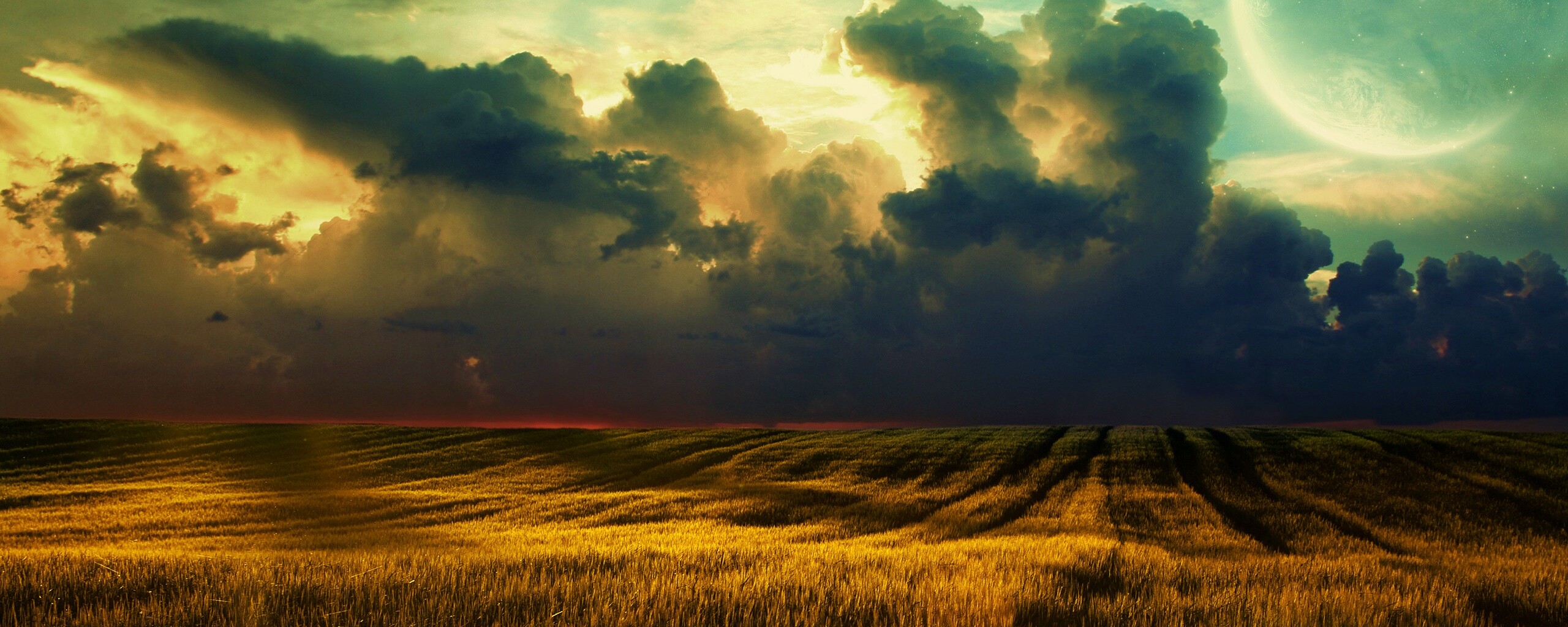 Обои для рабочего стола «Две планеты» 2560х1024 с фильтром vibrance (оригинал 2560х1600)