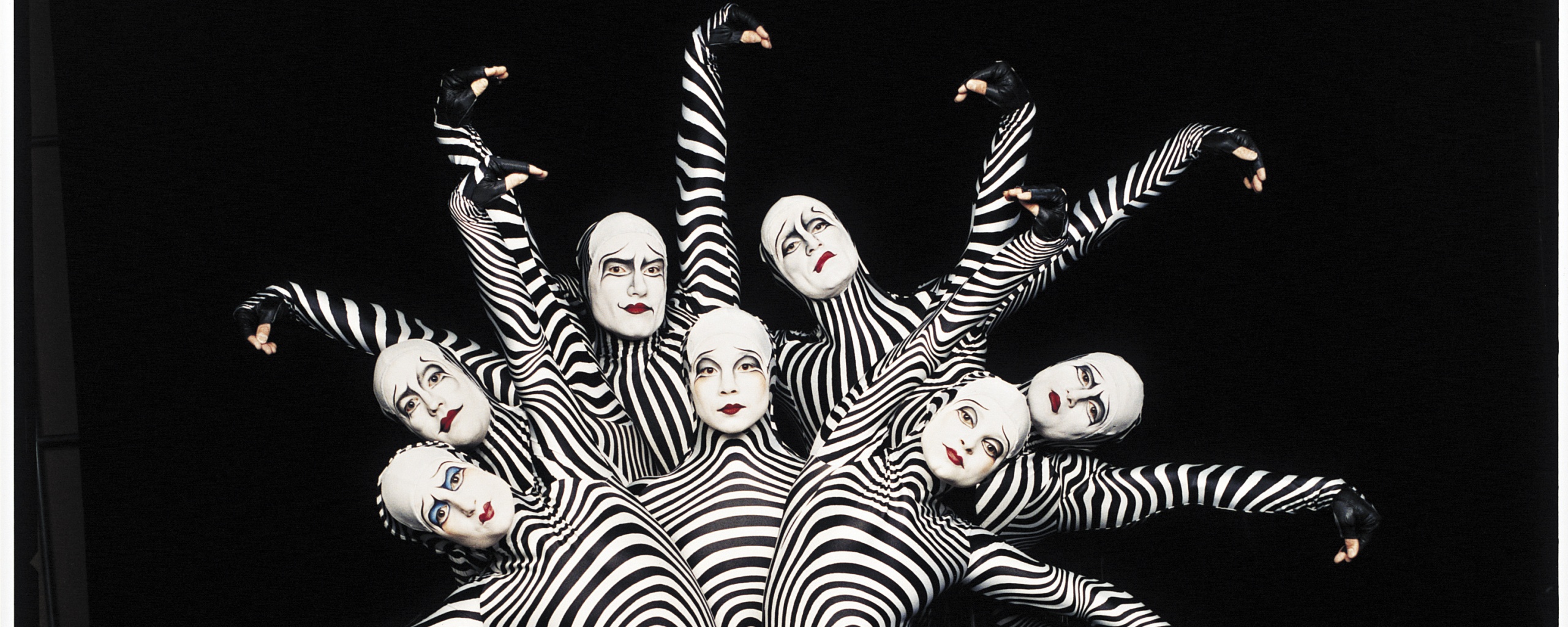 Обои для рабочего стола «Зеброиды (актеры цирка дю солей)» 2560х1024 (оригинал 3064х3122)