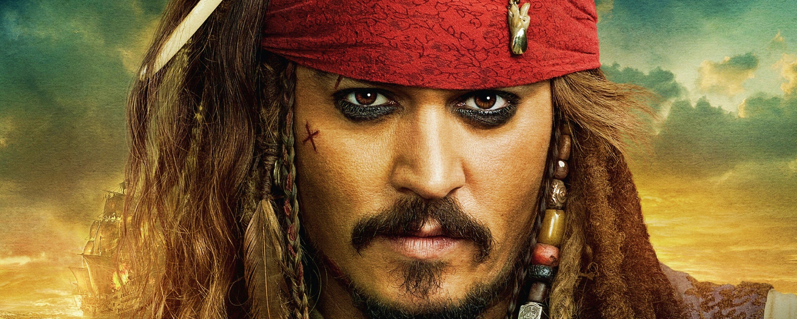 Обои для рабочего стола «Капитан Джек Воробей» 2560х1024 с фильтром vibrance (оригинал 2560х1600)