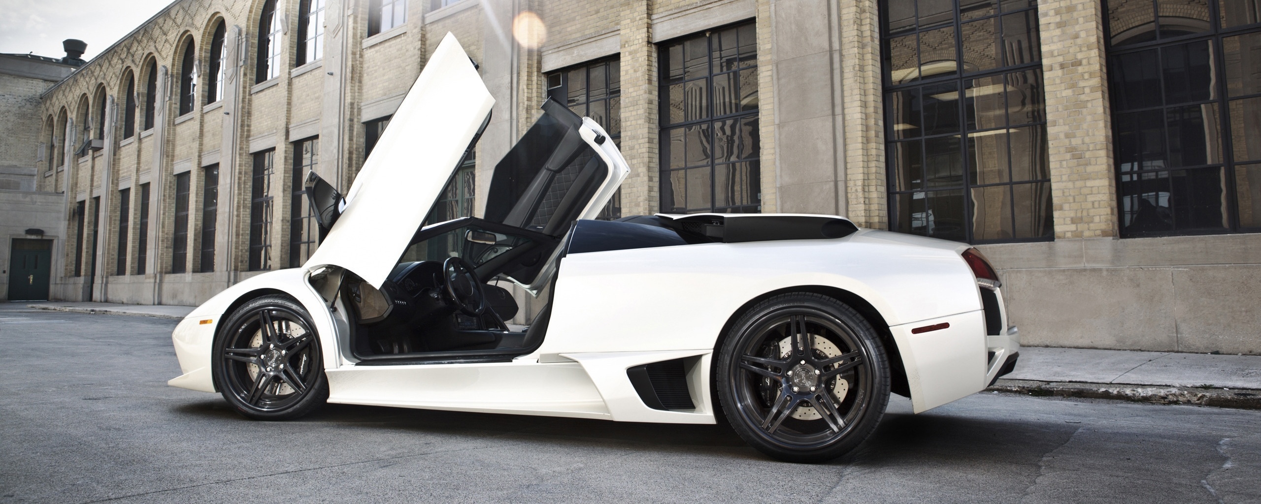 Обои для рабочего стола «Белая Ламборгини Мурсьелаго» 2560х1024 (оригинал 2560х1600)