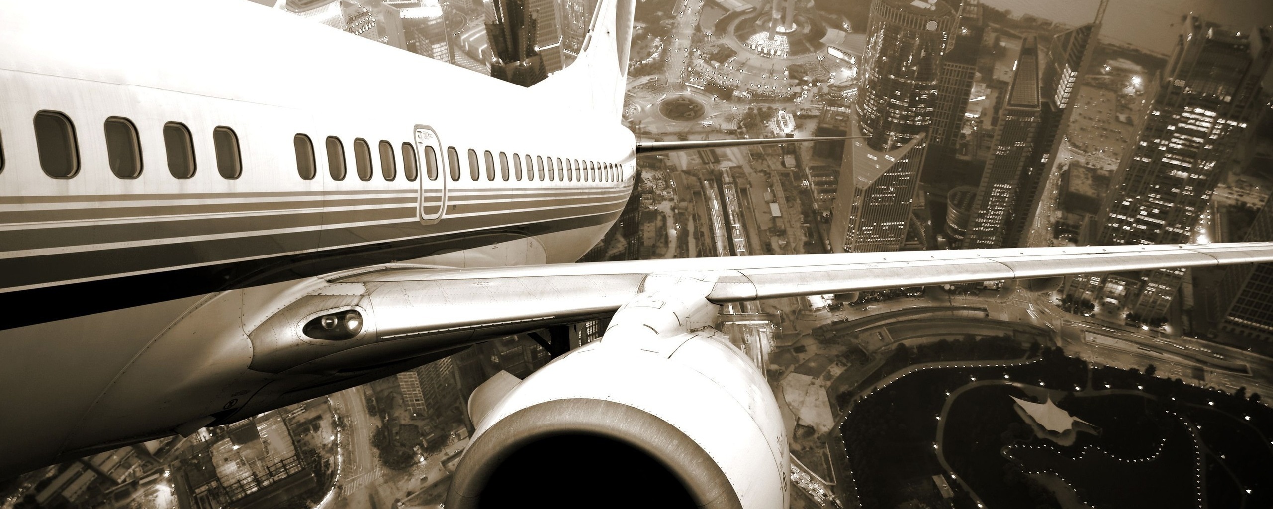 Обои для рабочего стола «Взлет над городом» 2560х1024 (оригинал 2560х1600)