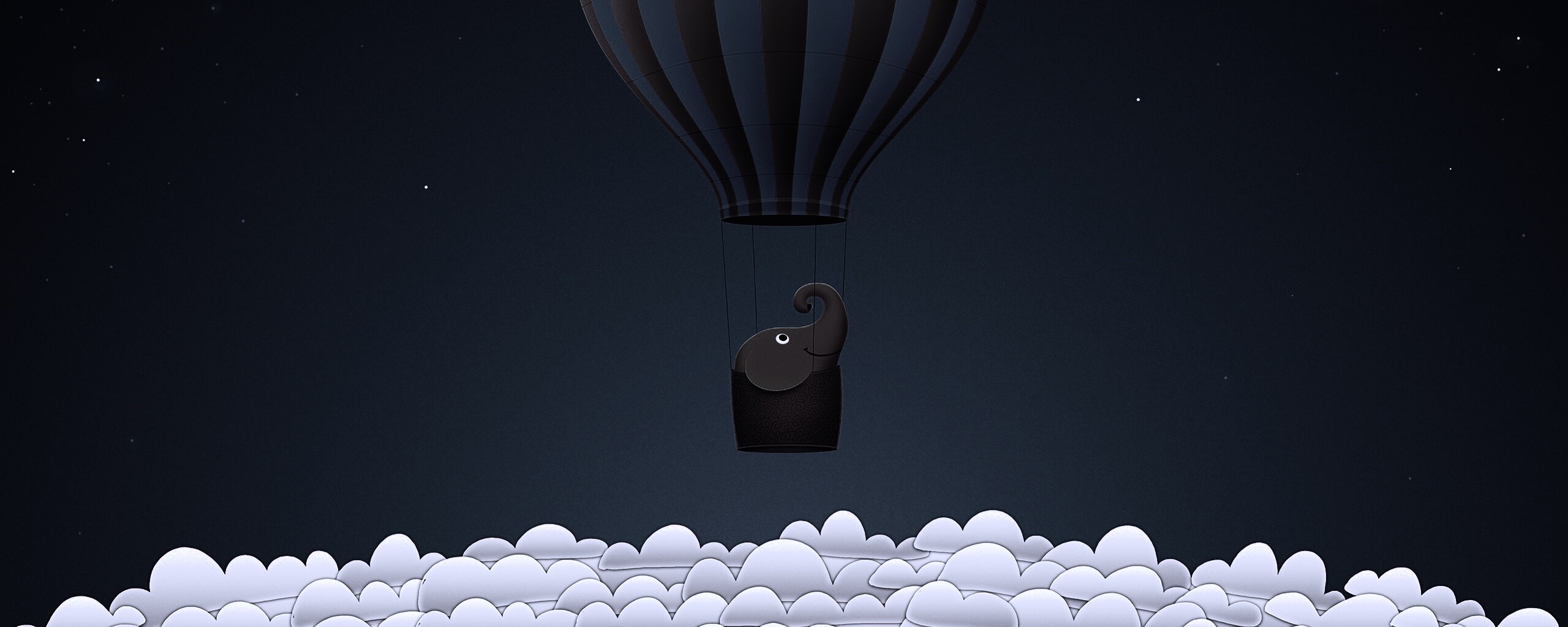 Обои для рабочего стола «Слон на воздушном шаре» 2560х1024 с фильтром gotham (оригинал 2560х1600)