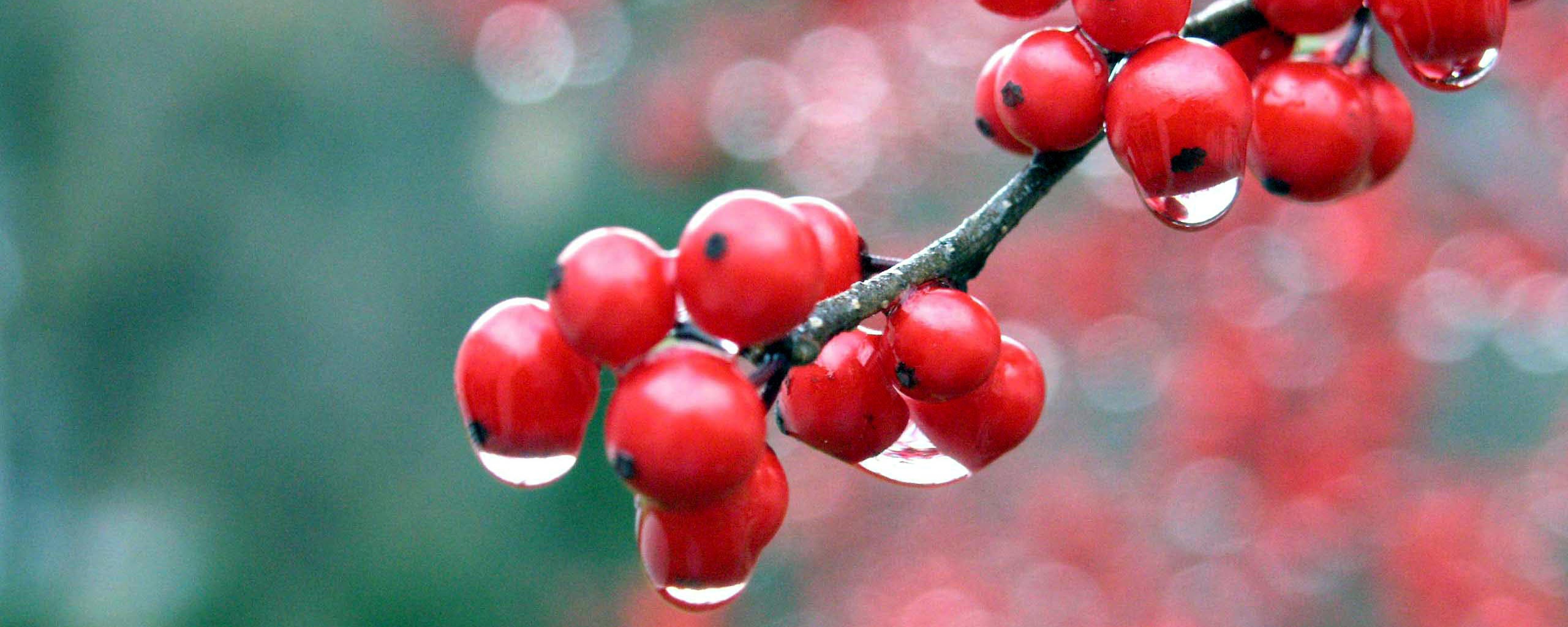 Обои для рабочего стола «Капли росы на ягодах рябины» 2560х1024 (оригинал 2560х1600)