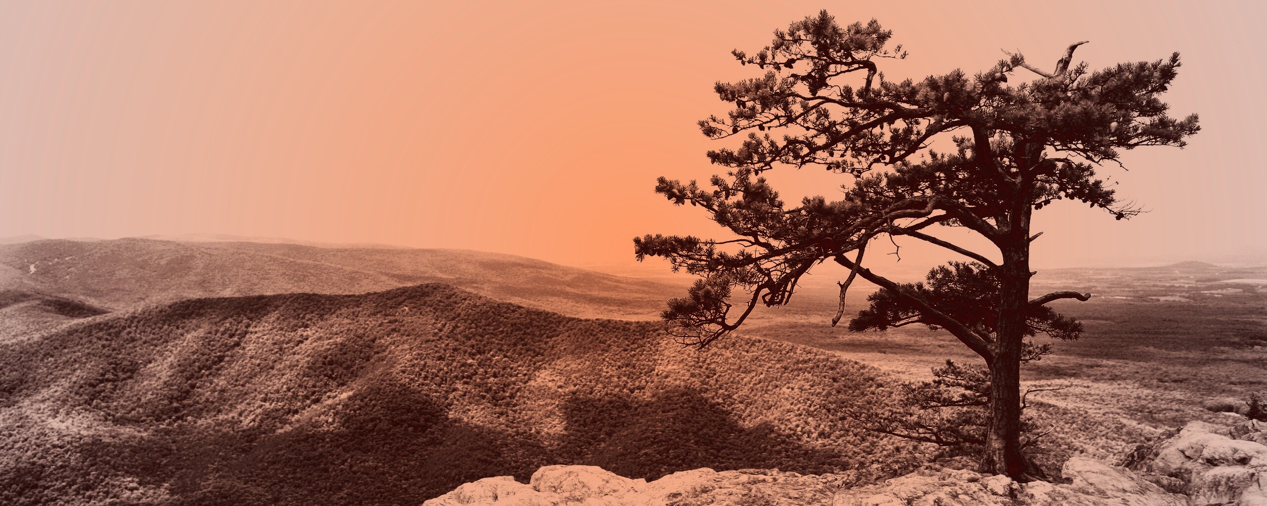 «Горное дерево в черно-белых тонах»