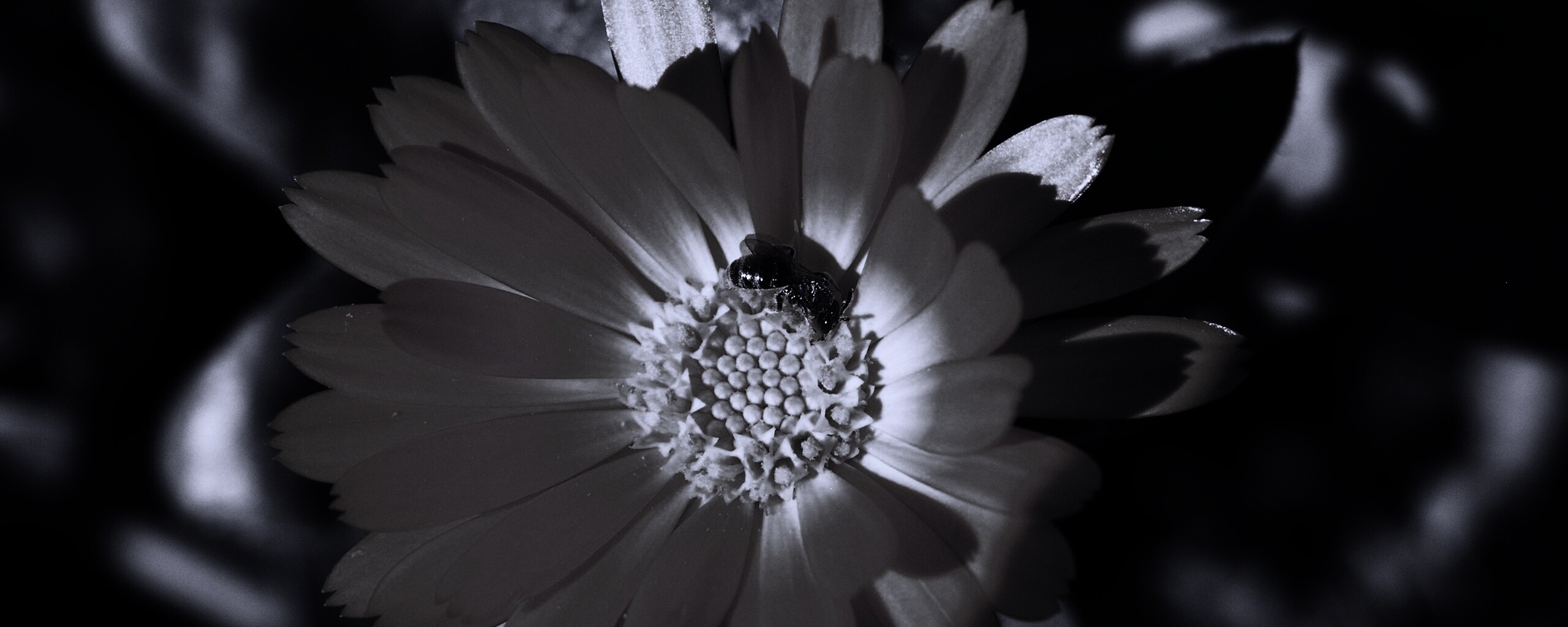 Обои для рабочего стола «Оса на цветке» 2560х1024 с фильтром gotham (оригинал 2560х1600)
