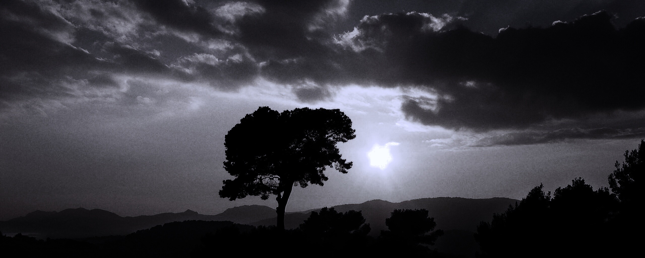 Обои для рабочего стола «Закат над холмами» 2560х1024 с фильтром gotham (оригинал 2560х1600)