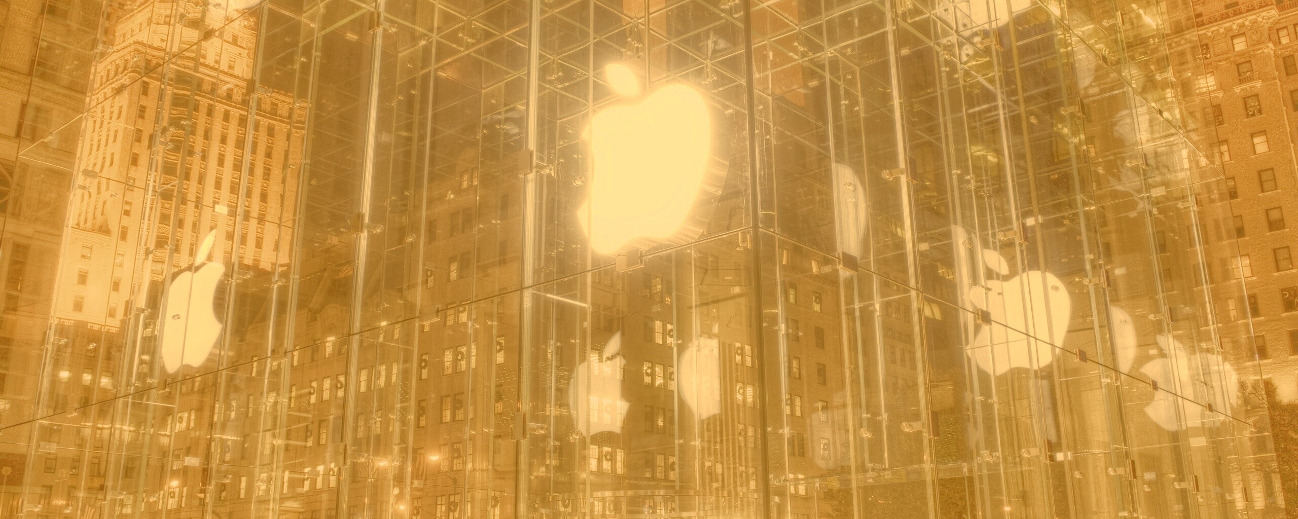 «Отражение логотипа Apple в стеклянном здании»
