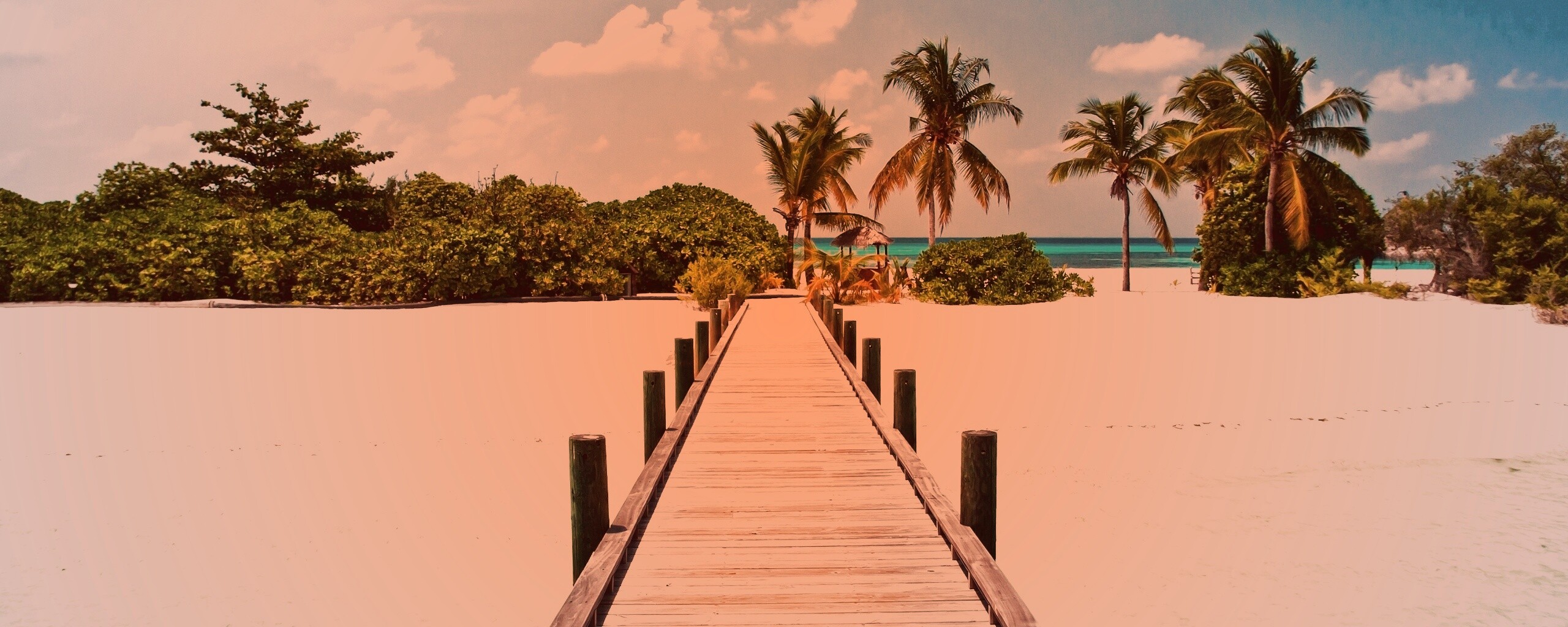 Обои для рабочего стола «Пирс на тропическом острове» 2560х1024 с фильтром toaster (оригинал 3700х2458)