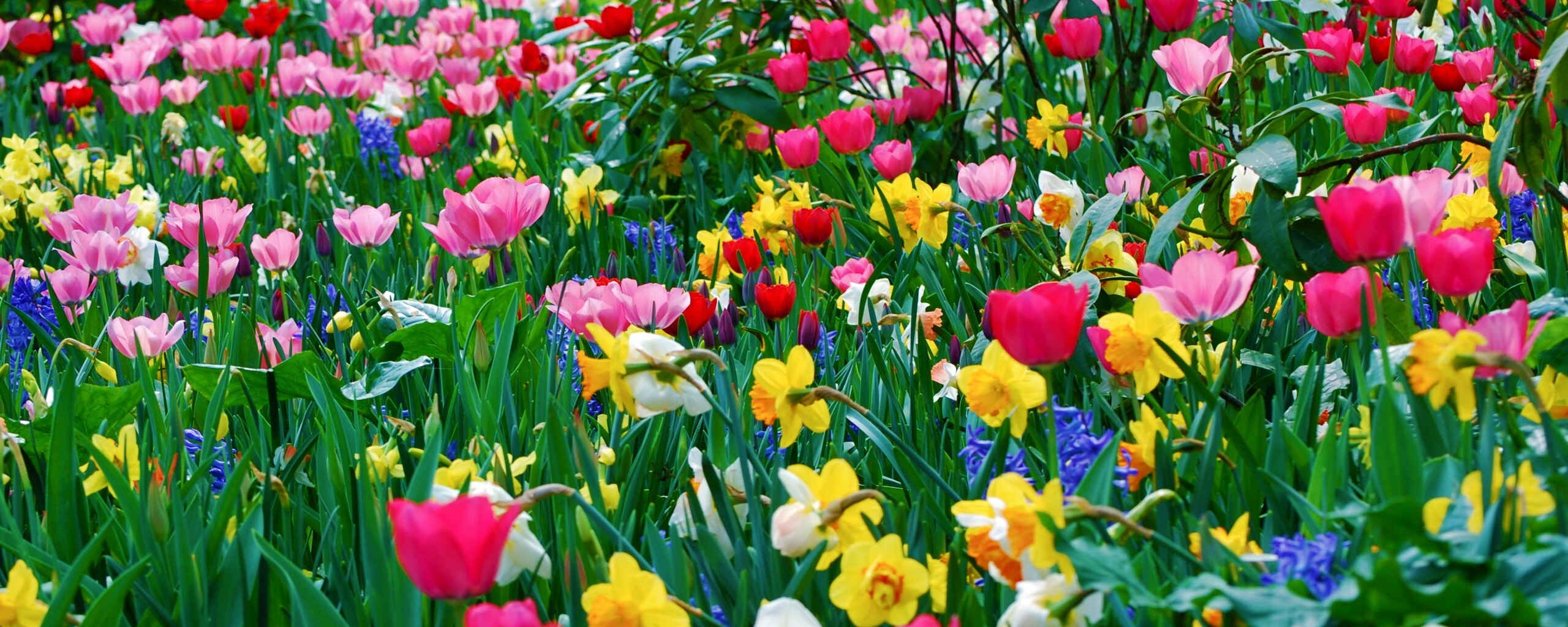 Обои для рабочего стола «Поляна со множеством цветов» 2560х1024 с фильтром vibrance (оригинал 3872х2592)