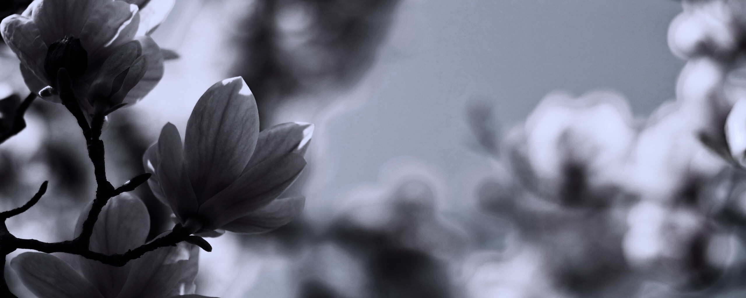 Обои для рабочего стола «Цветы магнолии» 2560х1024 с фильтром gotham (оригинал 3008х2000)