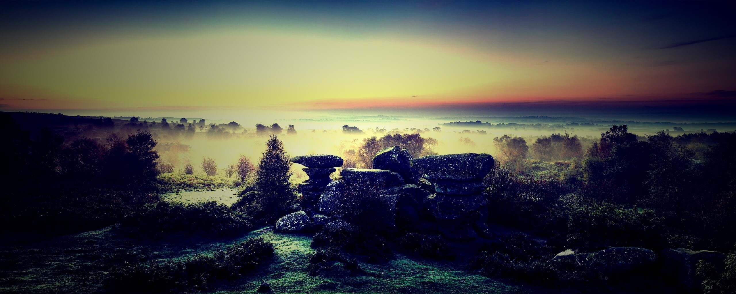 Обои для рабочего стола «Туман» 2560х1024 с фильтром lomo (оригинал 4155х1400)