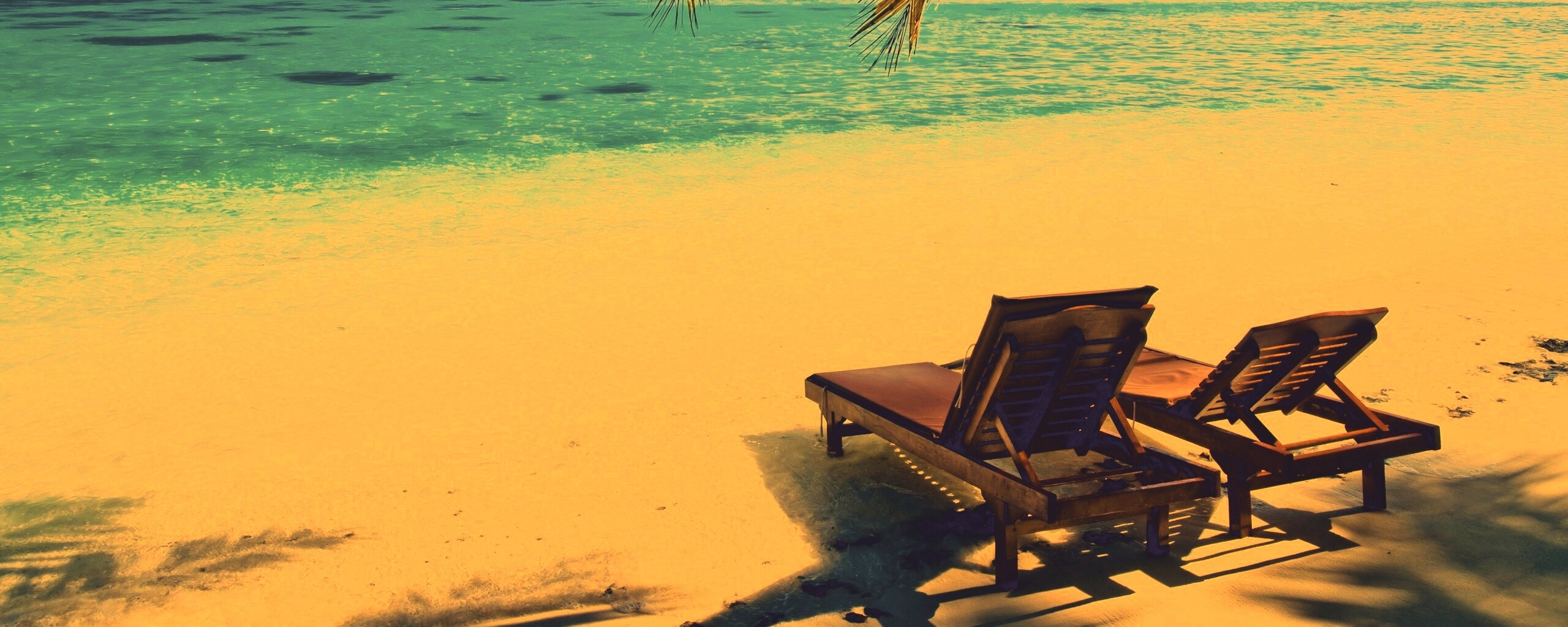 Обои для рабочего стола «Шезлонги у самой воды» 2560х1024 с фильтром nashville (оригинал 2560х1650)