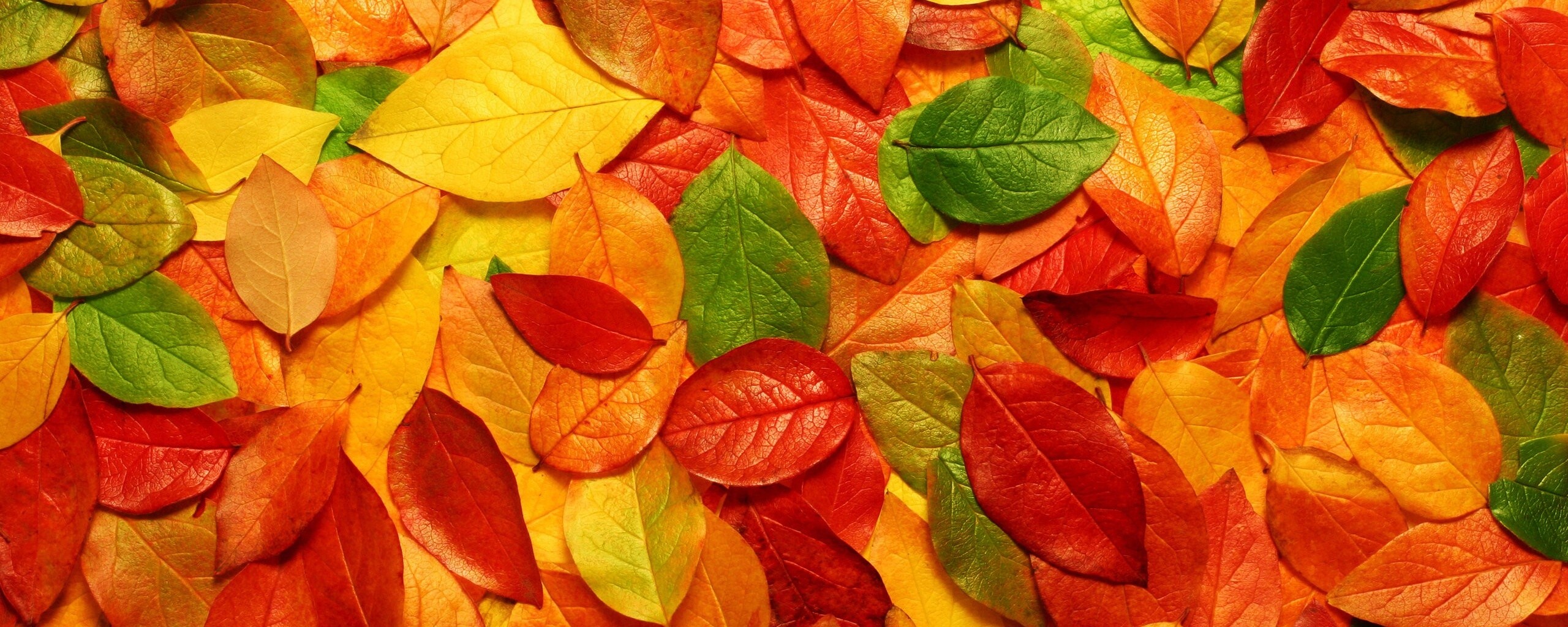 Обои для рабочего стола «Цветной ковёр из листьев» 2560х1024 с фильтром vibrance (оригинал 2560х1600)
