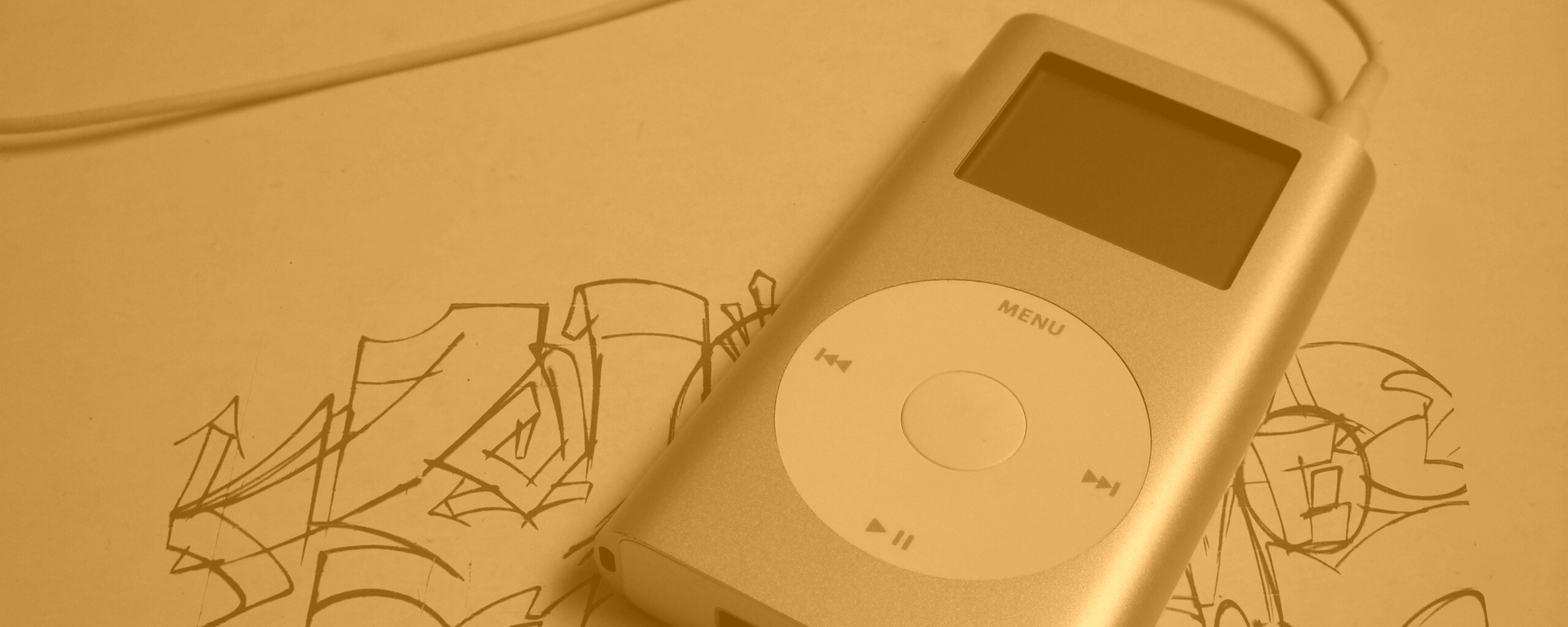 «iPod на лиске с граффити»