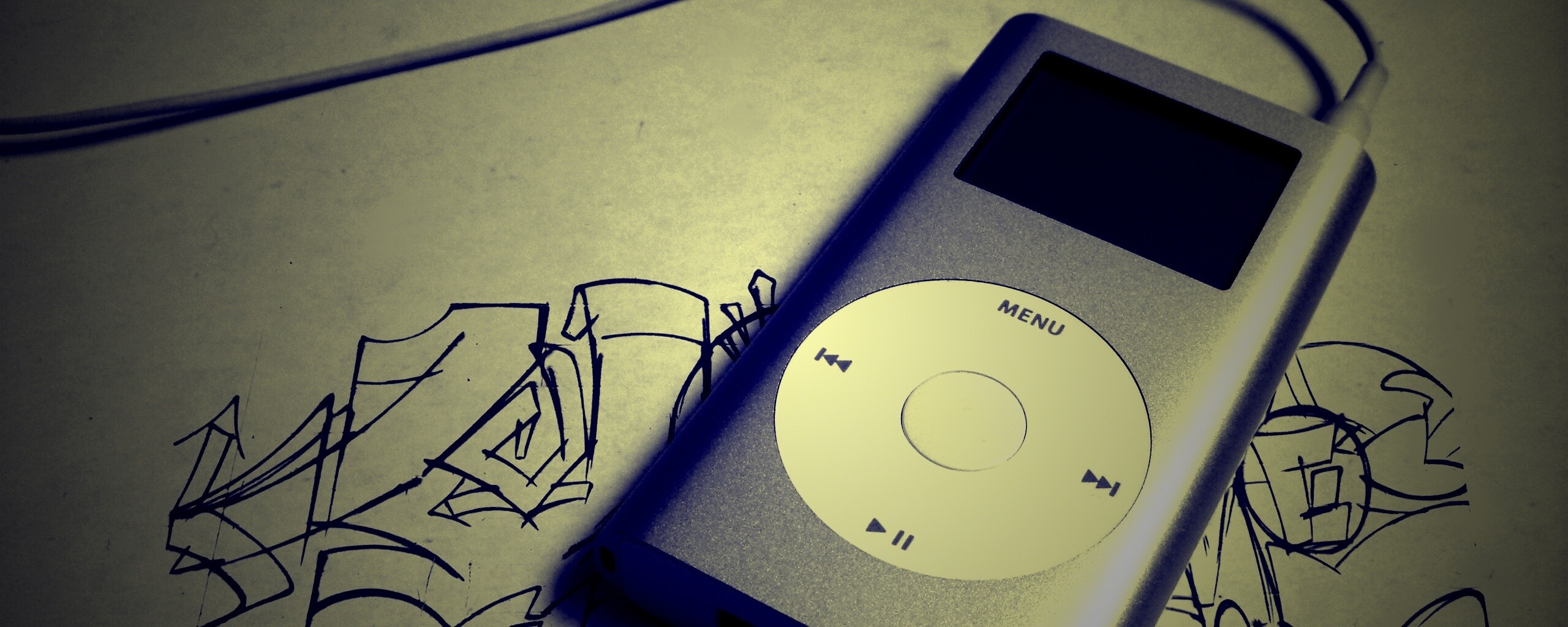 «iPod на лиске с граффити»
