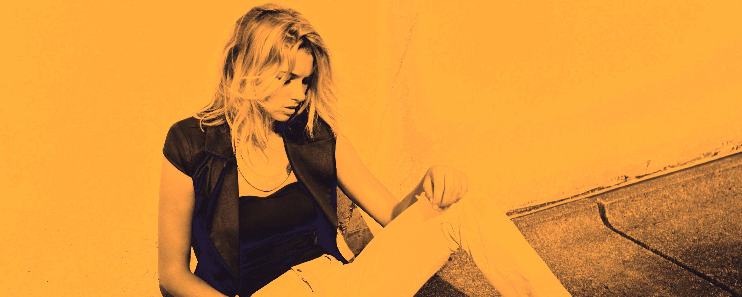 Обои для рабочего стола «Девушка у стены» 2560х1024 с фильтром nashville (оригинал 2560х1600)
