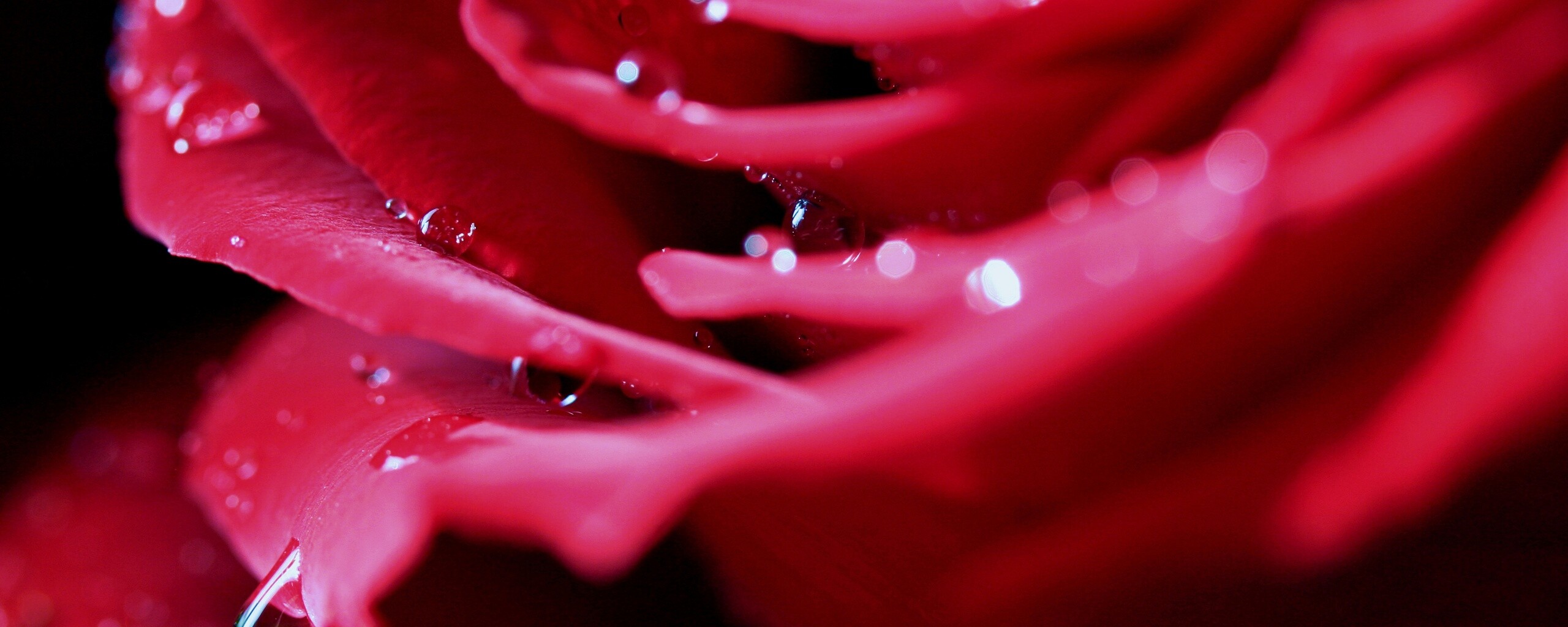 Обои для рабочего стола «Капли на лепестках розы» 2560х1024 с фильтром vibrance (оригинал 2560х1600)