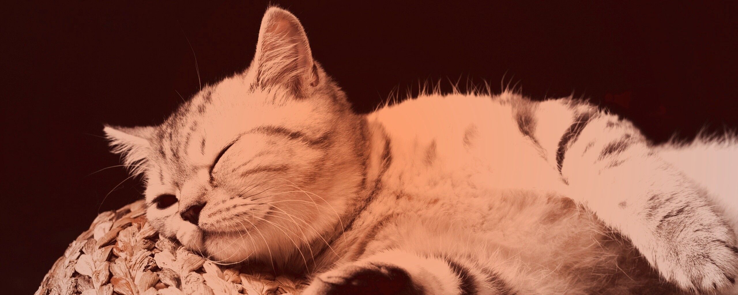 «Пушистый кот спит на корзине»
