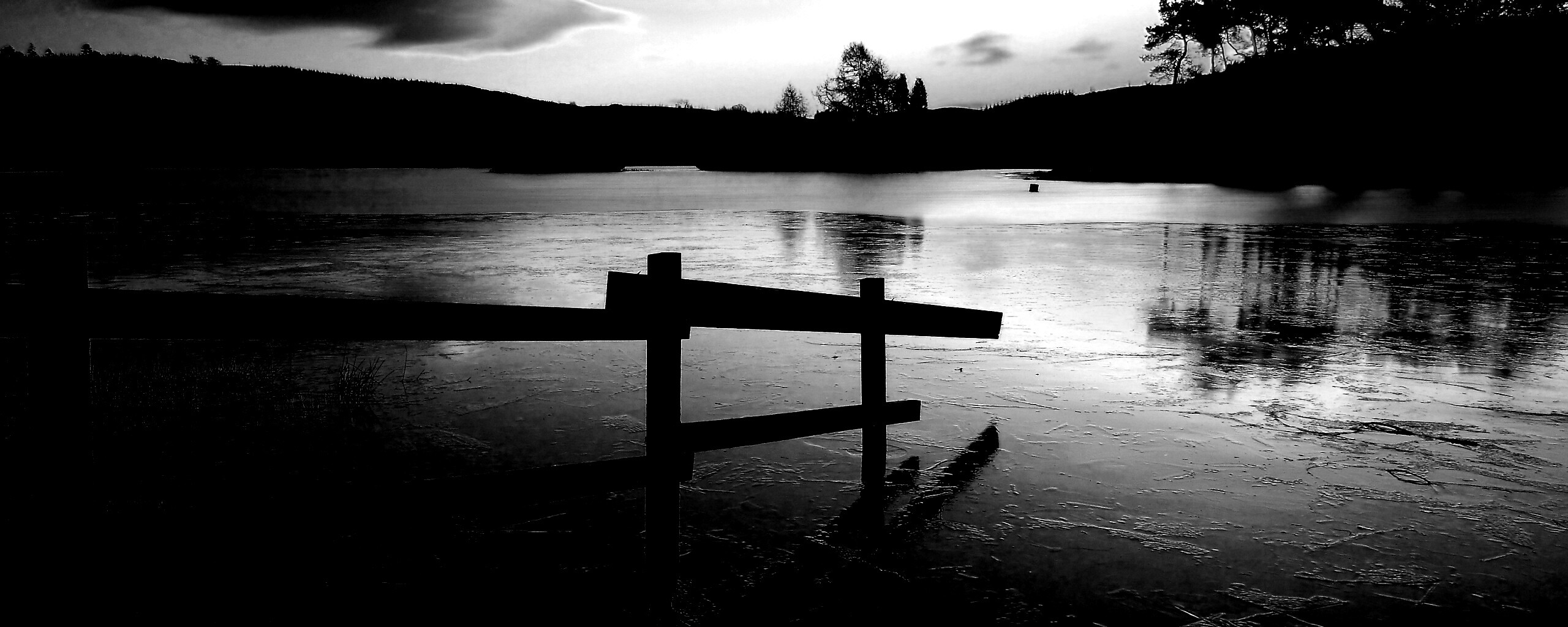 Обои для рабочего стола «Красивый закат на озере» 2560х1024 с фильтром inkwell (оригинал 3200х2000)