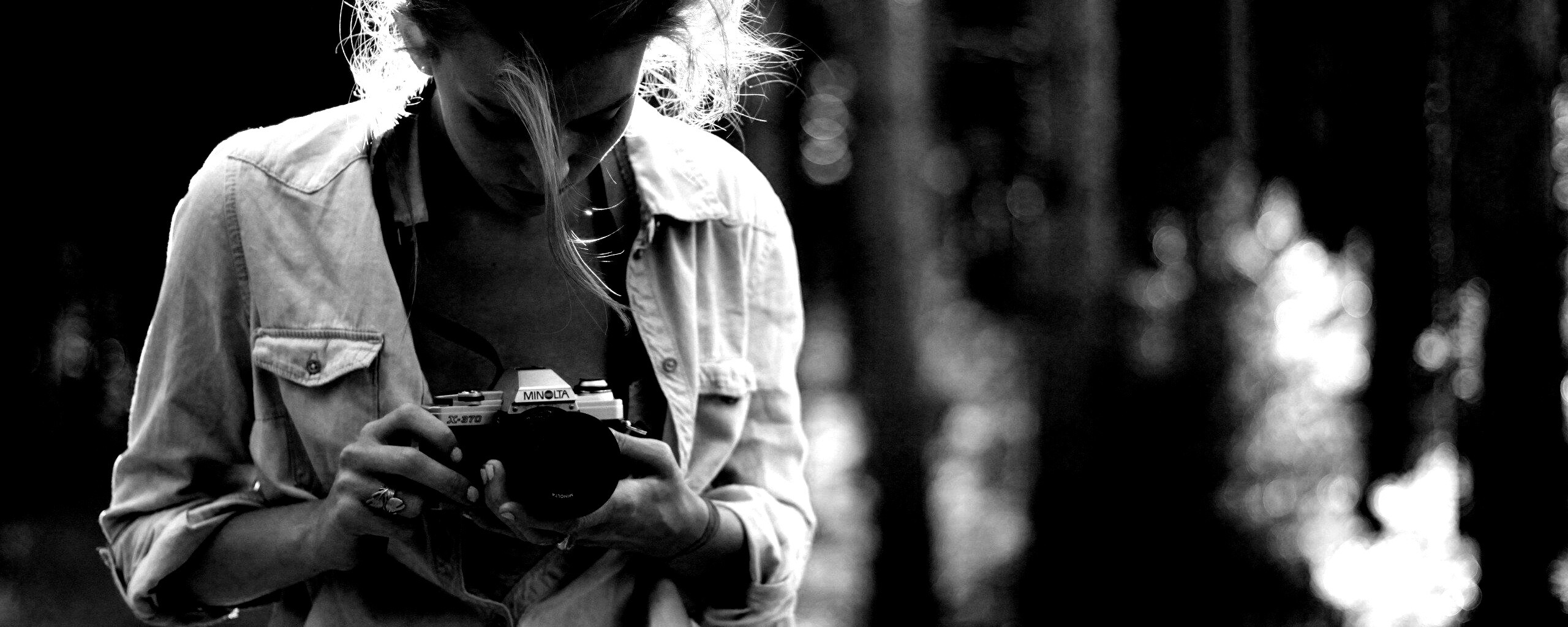 Обои для рабочего стола «Девушка-фотограф» 2560х1024 с фильтром inkwell (оригинал 2560х1600)
