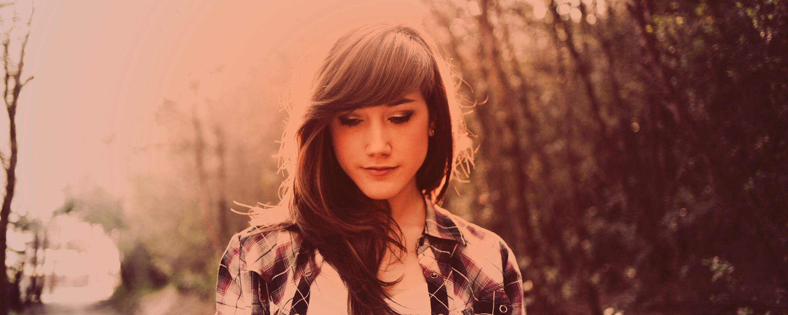 Обои для рабочего стола «Девушка в парке» 2560х1024 с фильтром toaster (оригинал 5616х3744)