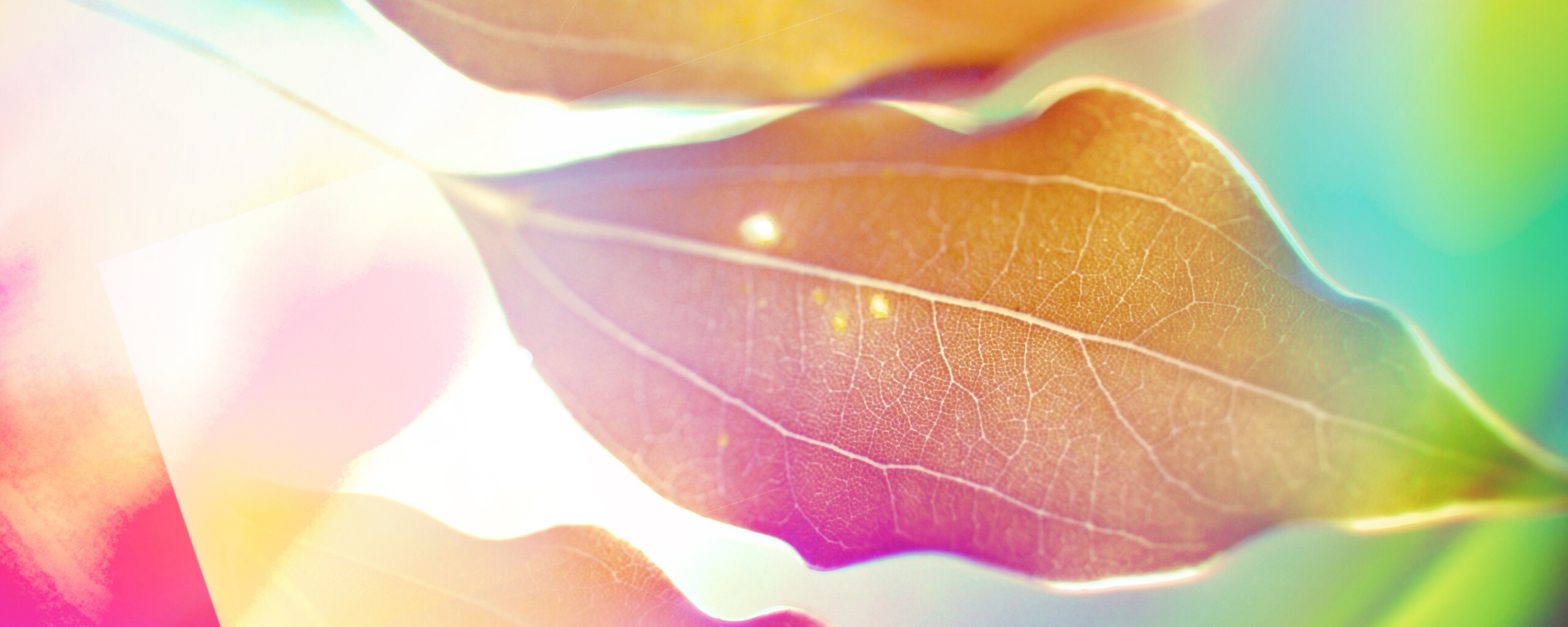 Обои для рабочего стола «Радужные листья» 2560х1024 с фильтром vibrance (оригинал 2560х1600)