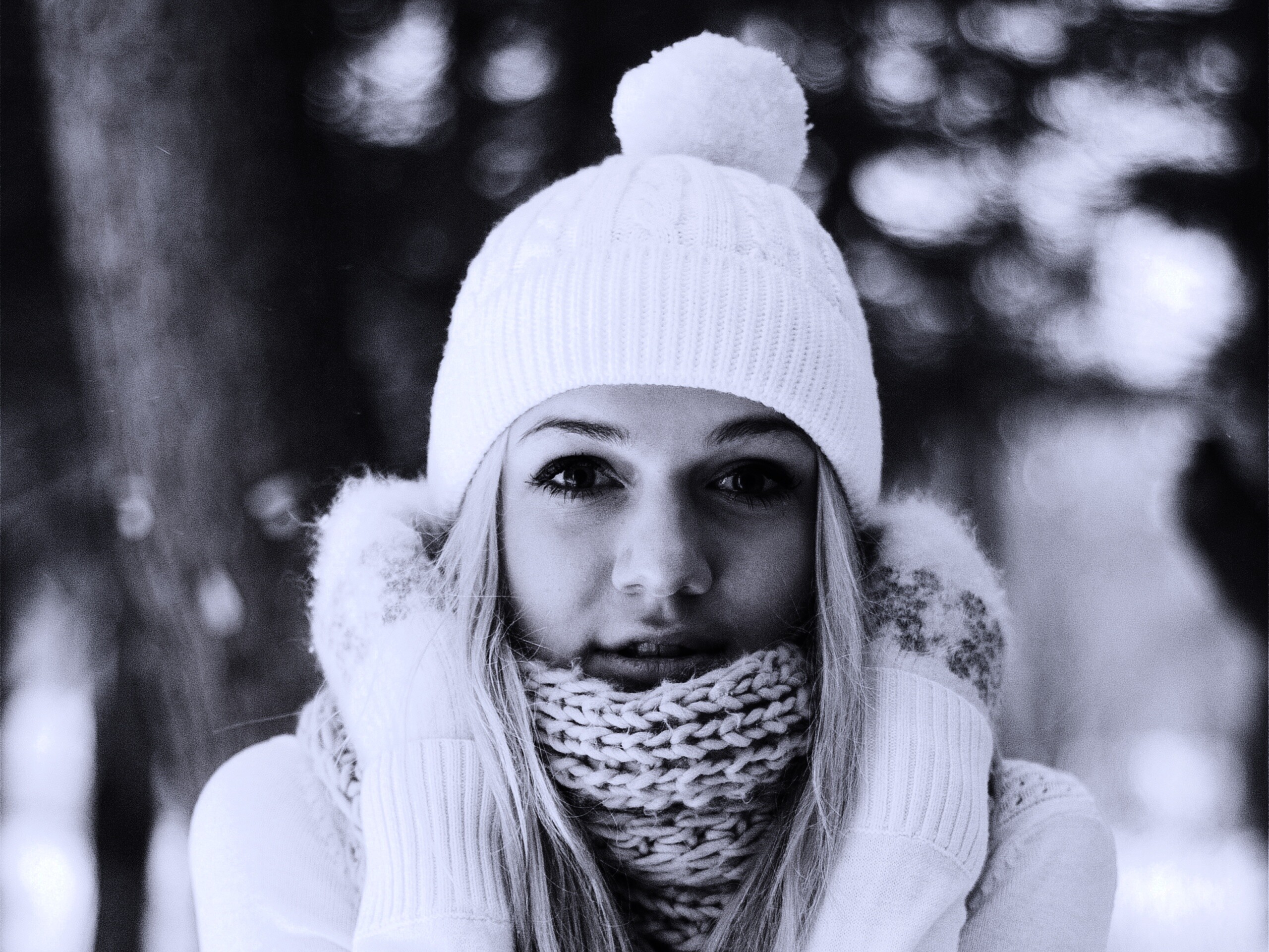 «Девушка в белом в снежном лесу»