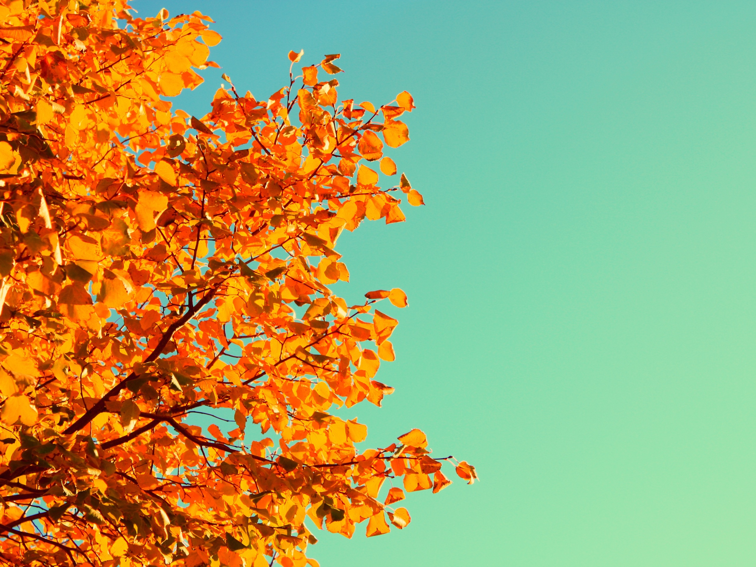 «Ветви с пожелтевшими листьями на фоне неба»