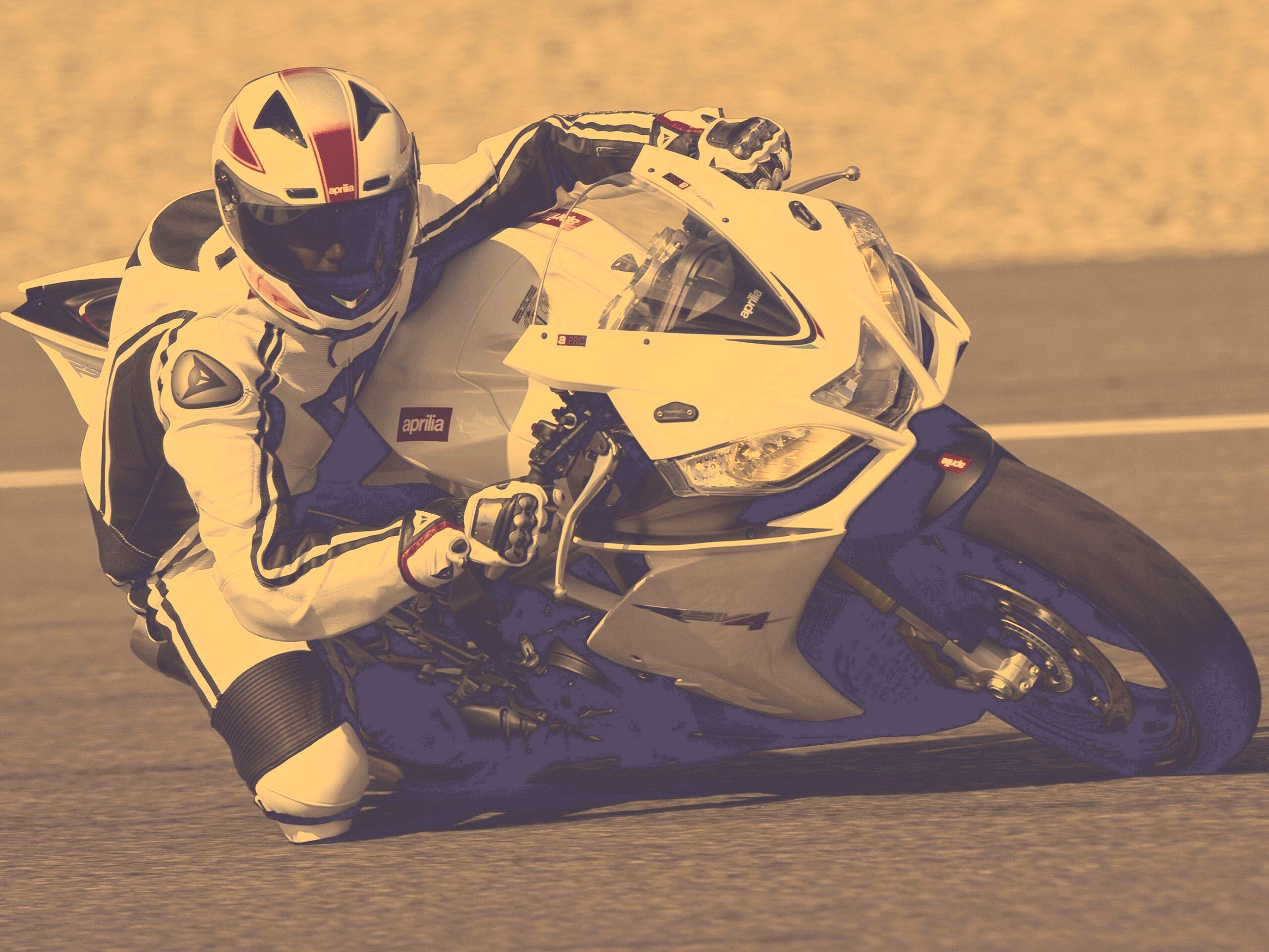 «Байкер в белой экиперовкена Априлия РСВ4»