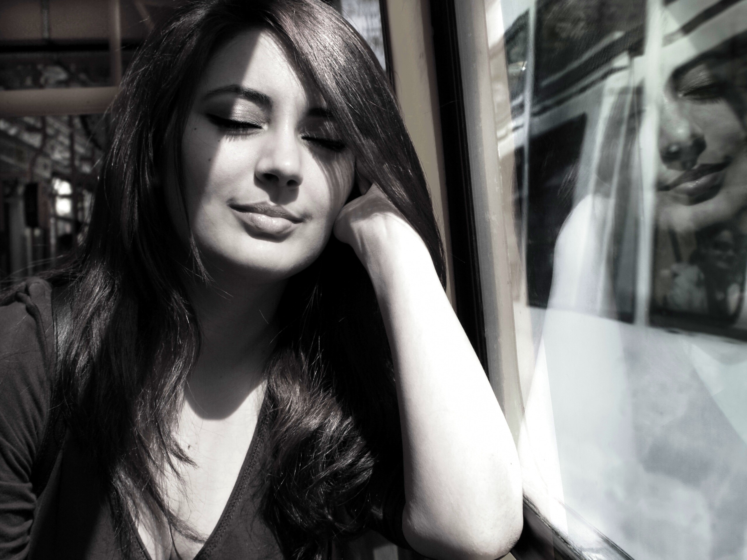 «Девушка с закрытыми глазами в электричке»