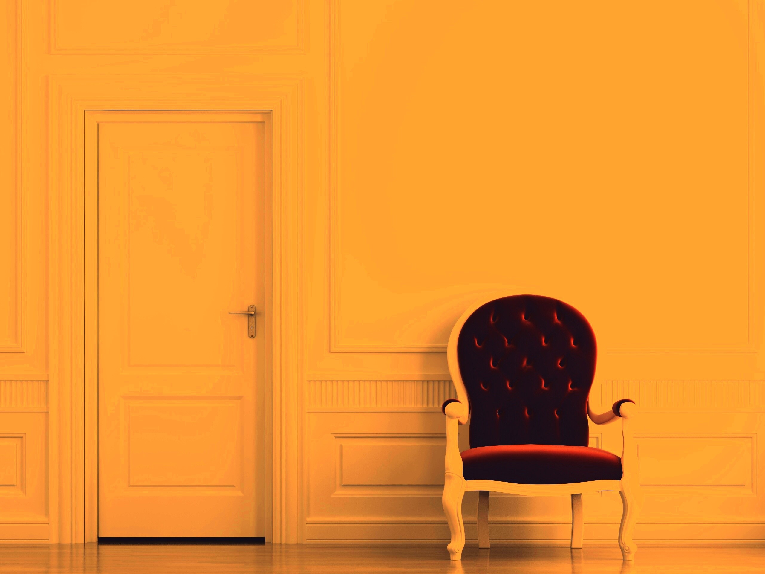 «красное кресло в белой комнате»