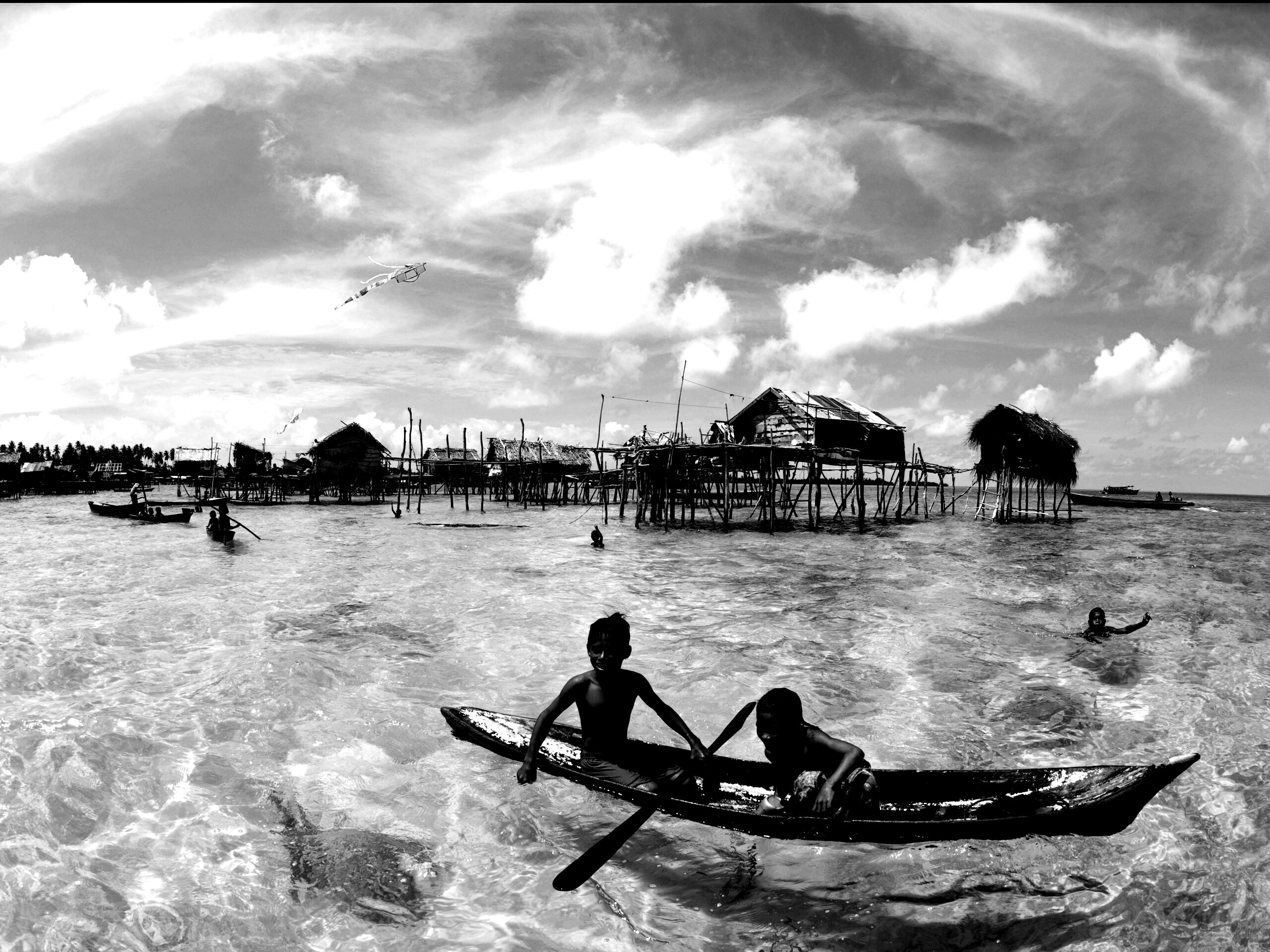 «Дети в лодке у поселения туземцев»