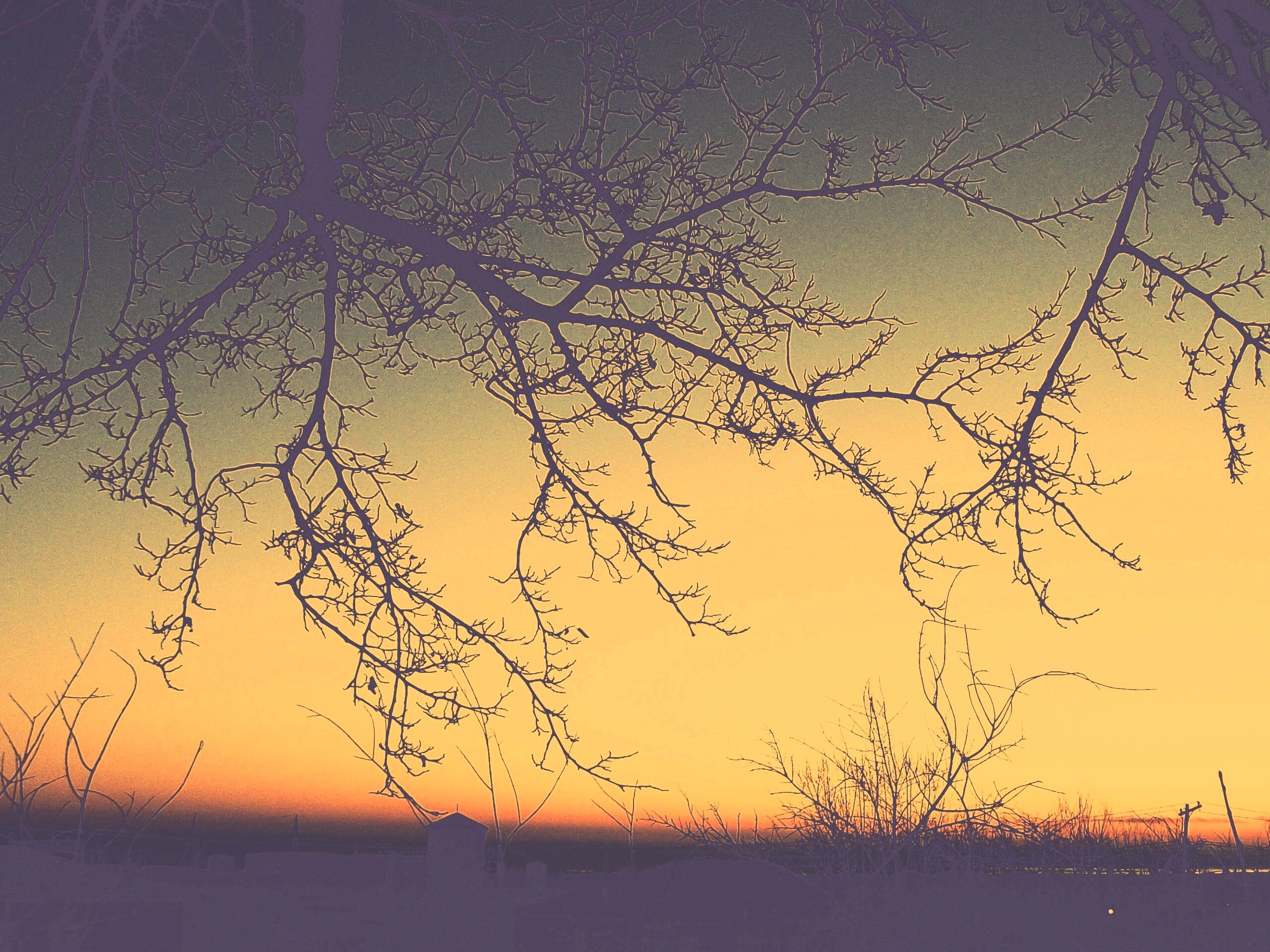 «Закат сквозь ветки деревьев»