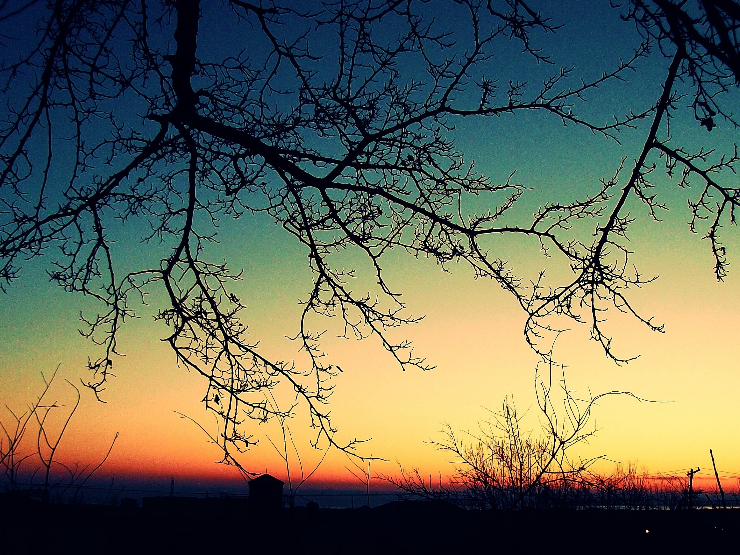 «Закат сквозь ветки деревьев»
