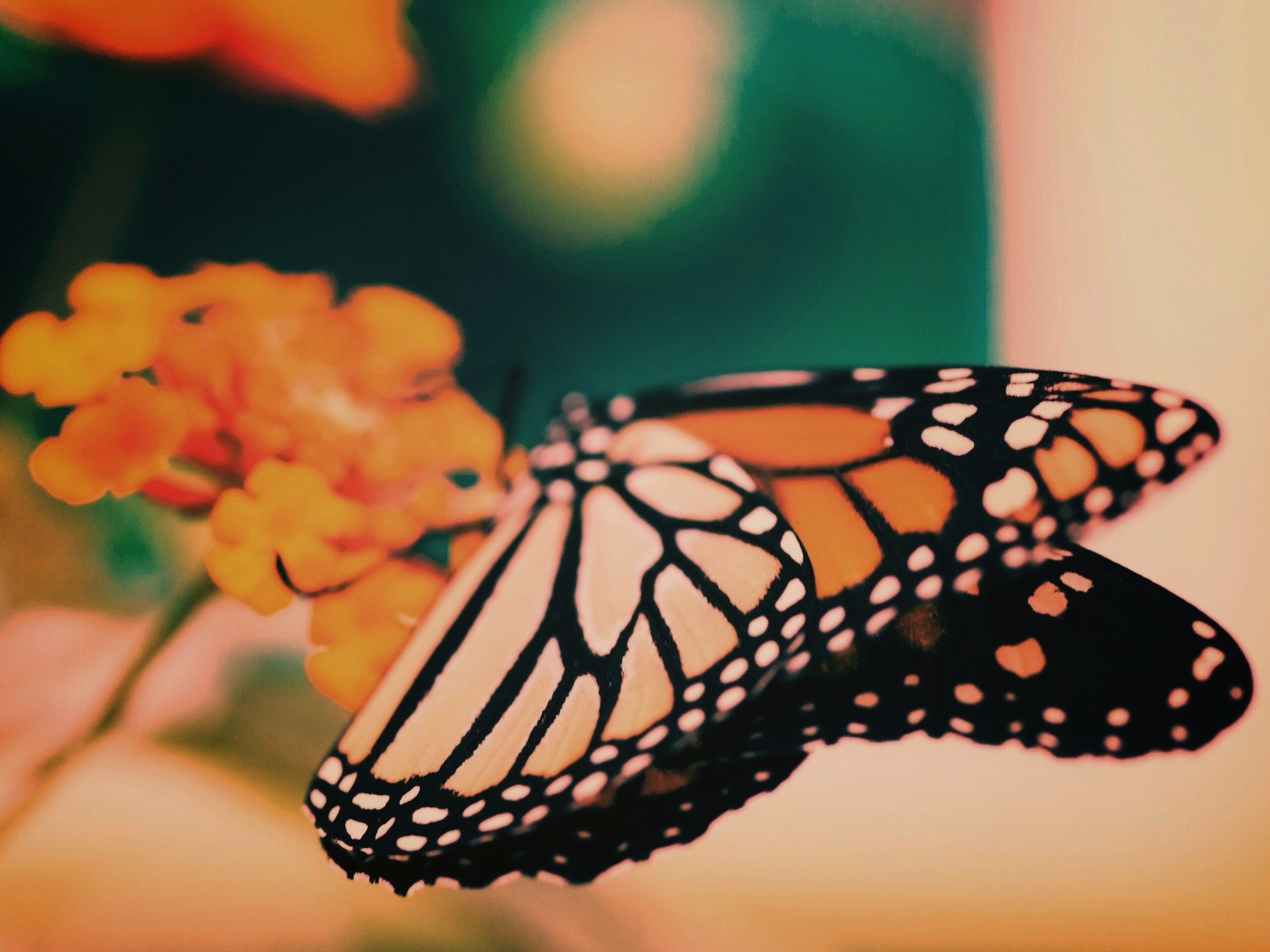 Обои для рабочего стола «Бабочка на цветке в макро» 2560х1920 с фильтром earlybird (оригинал 3200х2000)